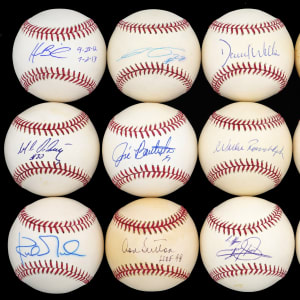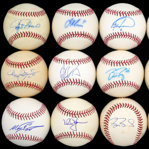 A stellar selection of Hall of Famers and stars is served up, with this bundle of (34) single-signed baseballs. Though 15% of the signatures are affected by ink migration, this condition is relatively minor, and all signatures are sufficiently distinct. Unless noted, the signatures are located on the sweet spots of ONL, OAL, or OML baseballs.