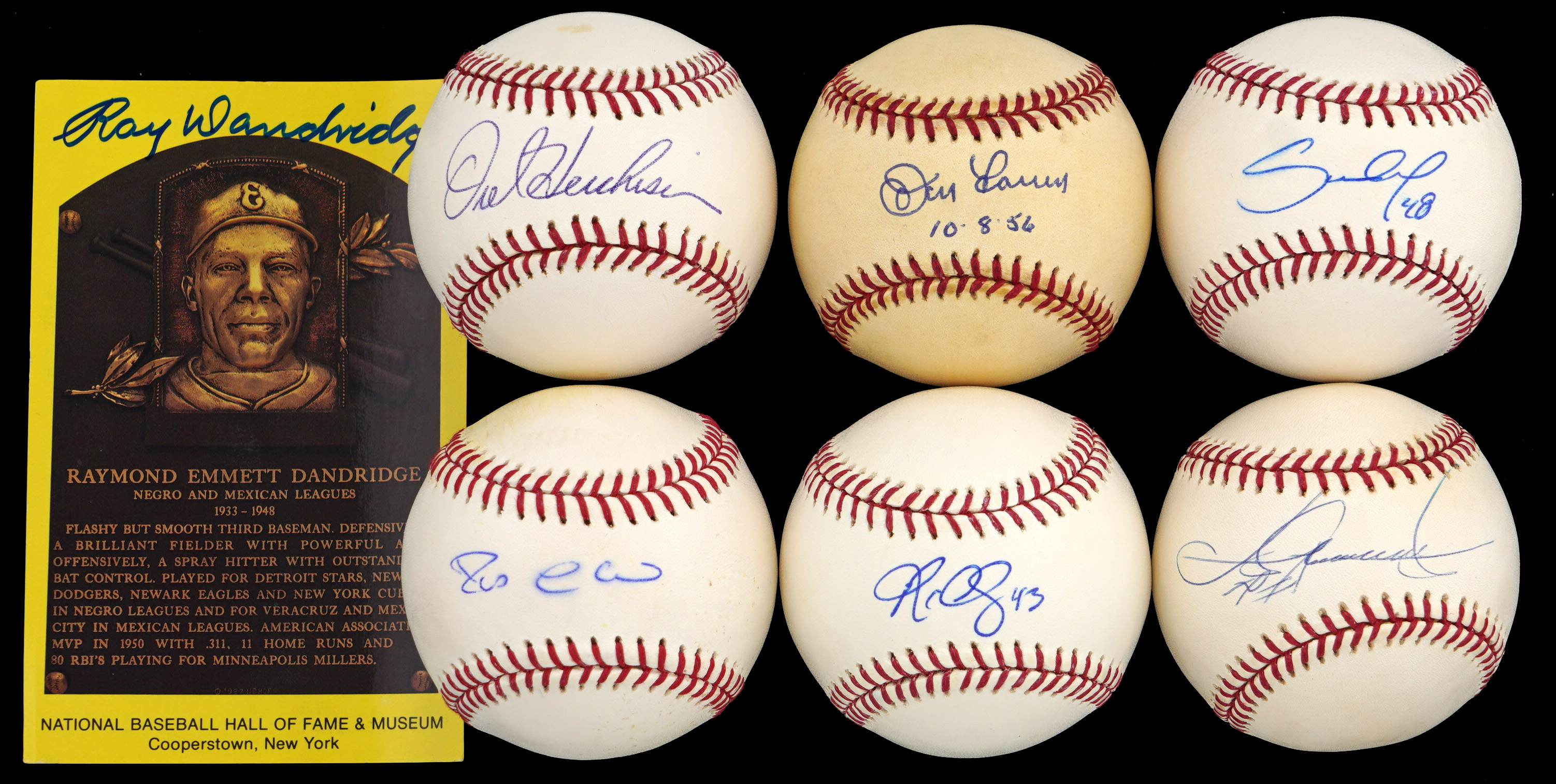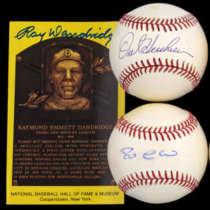 Also present is a Ray Dandridge signed yellow Hall of Fame plaque postcard.