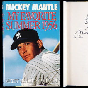 Get an in-depth look at a magical season, with this Mickey Mantle signed hardcover book "My Favorite Summer 1956". Published in 1991, this first edition book reports in NM condition, with an equally pleasing dust jacket. Mantle has applied a firm signature on the title page. Looking at Mantle's accomplishments during the 1956 season, it's easy to see why this was his favorite summer. He earned his first of three MVP awards, thanks to his Triple Crown winning season. Mantle was also selected for the AL All-Star squad, and he finished the season as a World Series champion. Exacting revenge for a loss to the Brooklyn Dodgers "Boys of Summer" in the 1955 World Series, the New York Yankees battled to a win in the 1956 Fall Classic. Going the full seven games, this hard-fought World Series was highlighted by Don Larsen's perfect game. Mantle made a thrilling catch to preserve Larsen's masterpiece, and he belted the only home run of the game!