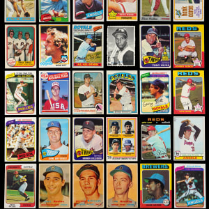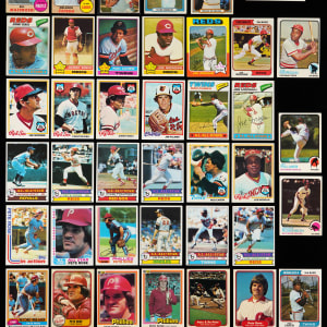1970s Stars: (44 stars, average EX) with 1970 Topps #220 Carlton (GD), 1971 Topps: #100 Rose (EX), #250 Bench (laminated); 1972 Topps #550 B. Robinson (EX-MT), 1973 Topps #245 Yastrzemski (EX), 1974 Topps: #1 Aaron (GD), #300 Rose (VG); 1975 Topps: #260 Bench (VG), #320 Rose (GD), #660 Aaron (VG-EX); 1976 Topps: #240 Rose (VG), #300 Bench (VG-EX); 1977 Topps: #450 Rose (VG), #580 Brett (EX); 1978 Topps #707 Molitor/Trammell RC (GD), 1979 Topps #115 Ryan (VG-EX);