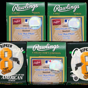 OAL/MacPhail Collector’s Edition baseballs (3). Two in sealed boxes, one in open box.