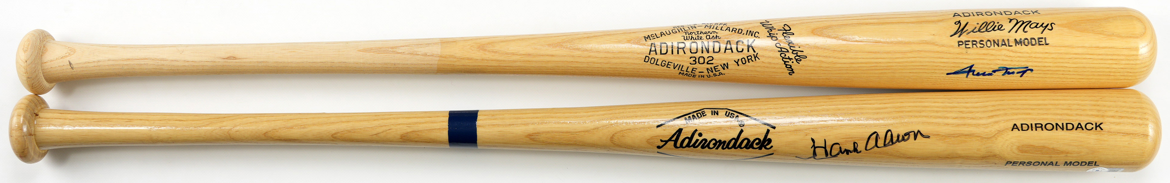 Make a two-handed grab for this pair of bats, single-signed by Willie Mays and Hank Aaron. These dearly departed sluggers wowed baseball fans for a generation, as two of the brightest stars the game has ever seen. Two like-new Adirondack bats serve as hosts for satisfying signatures by Mays and Aaron.