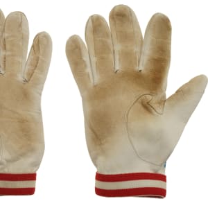 Presented here is an extraordinary relic, accompanied by extraordinary provenance, from this significant game. Offered are a pair of red-and-white Mizuno batting gloves worn by Rose during this record-breaking game and gifted directly to a Major League executive (our consignor), through Padres broadcaster Jerry Coleman, immediately following the game. Our consignor developed a penchant for collecting that was heightened by his time in professional baseball. Knowing that Rose was one hit shy of history entering a four-game homestand against the Padres starting on September 9, 1985, our consignor pulled Jerry Coleman aside and asked him to bring back a ticket from the record-setting game. Coleman had been friends with Rose for two decades dating back to the fall of 1967 when the two men, along with Joe DiMaggio and others, traveled to Vietnam to boost troop morale.