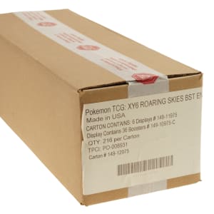 Extremely desirable factory-sealed booster box case from the 2015 Pokémon XY Roaring Skies series. The case contains six unopened boxes, with 36 packs per box for a total of 216 packs. The 110-card Roaring Skies set is particularly significant in the Pokémon community as it features the iconic Shaymin EX and M Rayquaza EX. Other notable Pokémon with desirable cards in the series include Rayquaza, Latios, and Latias. The original outer case displays minimal wear. The size/weight of this item requires that there will be an additional shipping charge for this lot.