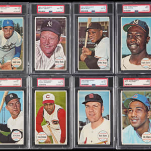 PSA NM-MT 8: (39 cards, includes one qualifier) with #1, 2, #3 Koufax, 4-6, 8, 9, #10 Bunning, #11 Clemente, 14-17, #18 Fregosi, 21 (oc), 22, 24, #25 Mantle, 27, 28, 30, 33-36, #37 Marichal, 40, #41 Gibson, 43, 45, 46, #50 B. Robinson, #51 Mays, 53, 56, #57 Boyer, 59, #60 Skowron SP;