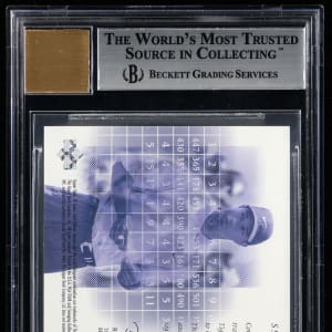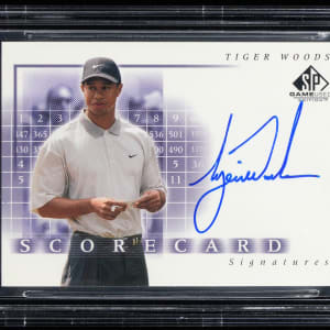 Graded MINT 9 by BGS. Imagine the thrill in pulling the offered 2002 SP Game-Used Edition Golf Tiger Woods certified autograph from a pack! This "on-card" signature of the legendary golfer is crisply penned in blue ink and delivers the following sub-grades: Centering: 9.5; Corners: 9; Edges: 9 and Surface: 9.