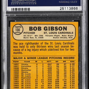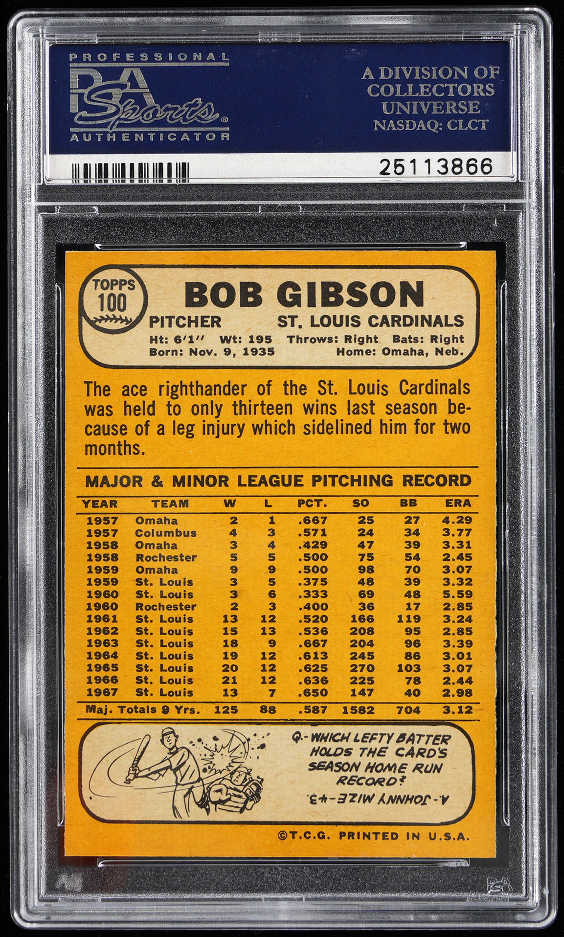 Graded MINT 9 by PSA. St. Louis Cardinals faithful will definitely "give a hoot" for the offered 1968 Topps #100 gum card! This Registry specialist's dream ranks in the upper 6% of all similar copies evaluated by the authenticator.