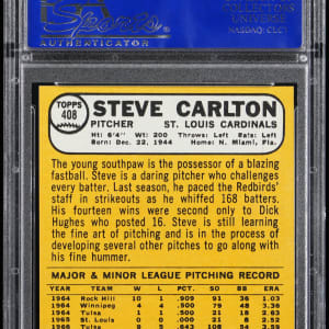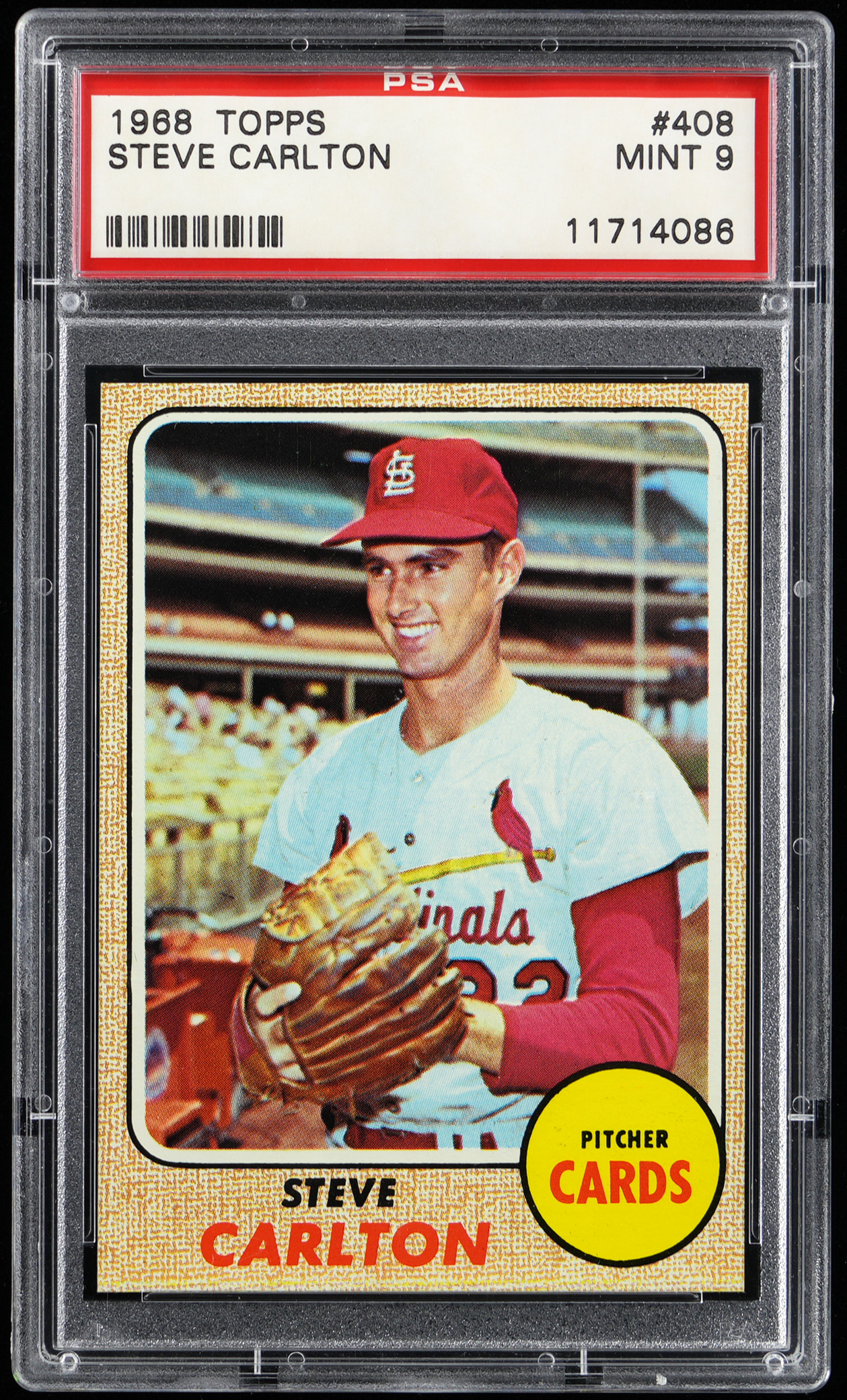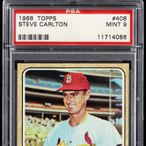 Graded MINT 9 by PSA. St. Louis Cardinals Hall of Famer Steve Carlton. Ranks in the upper 11% of all similar copies judged by the grading service.