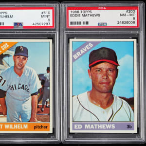 Each graded either NM-MT 8 or MINT 9 by PSA. Elite trio of 1966 Topps Hall of Fame high-grade singles. Includes: 1.) #200 Mathews (PSA NM-MT 8); 2.) #510 Wilhelm (PSA MINT 9) and 3.) #530 Roberts (PSA MINT 9).