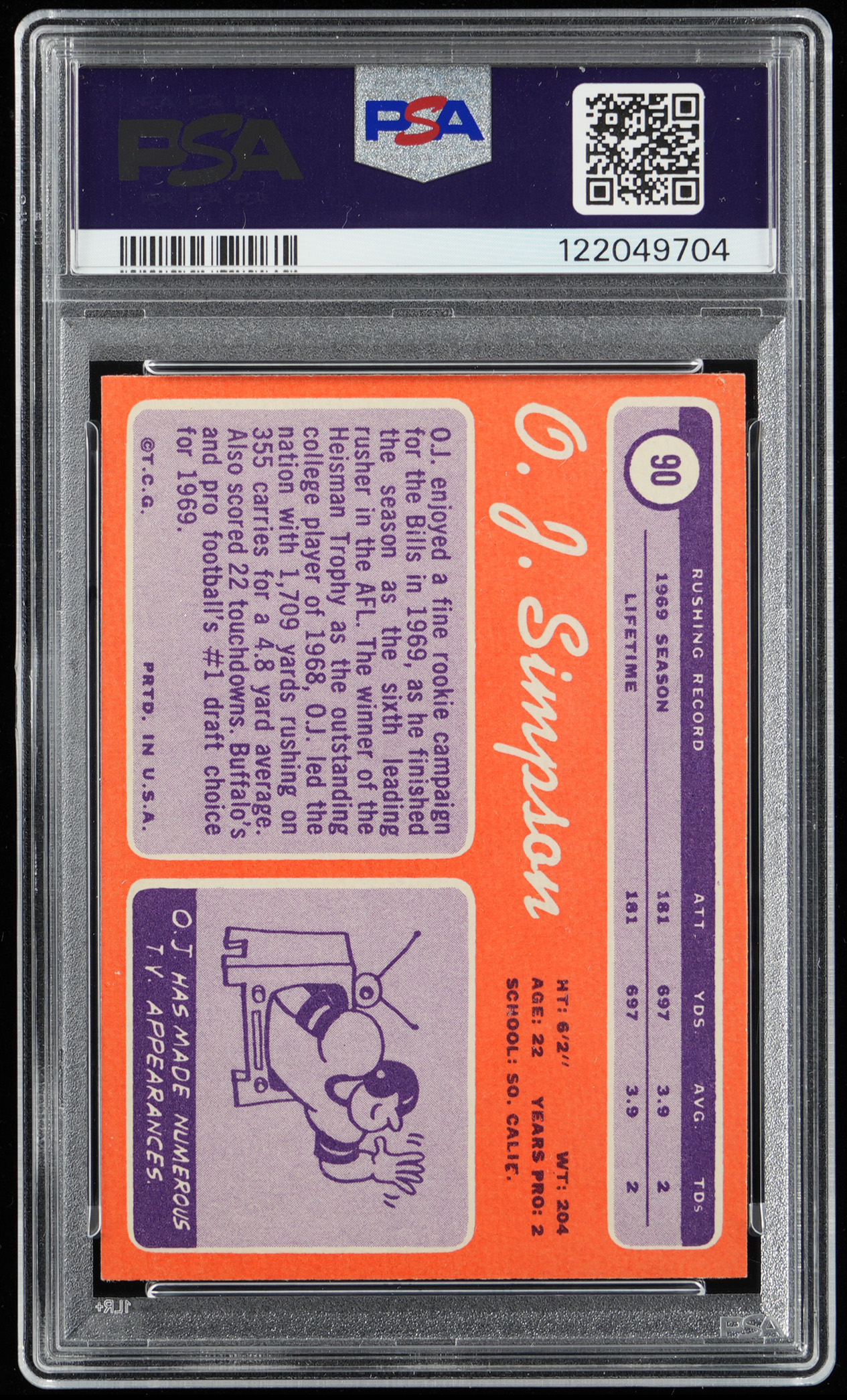 Graded NM 7 by PSA. This rookie card of "Juice" is definitely worth the squeeze! Buffalo Bills Hall of Famer.