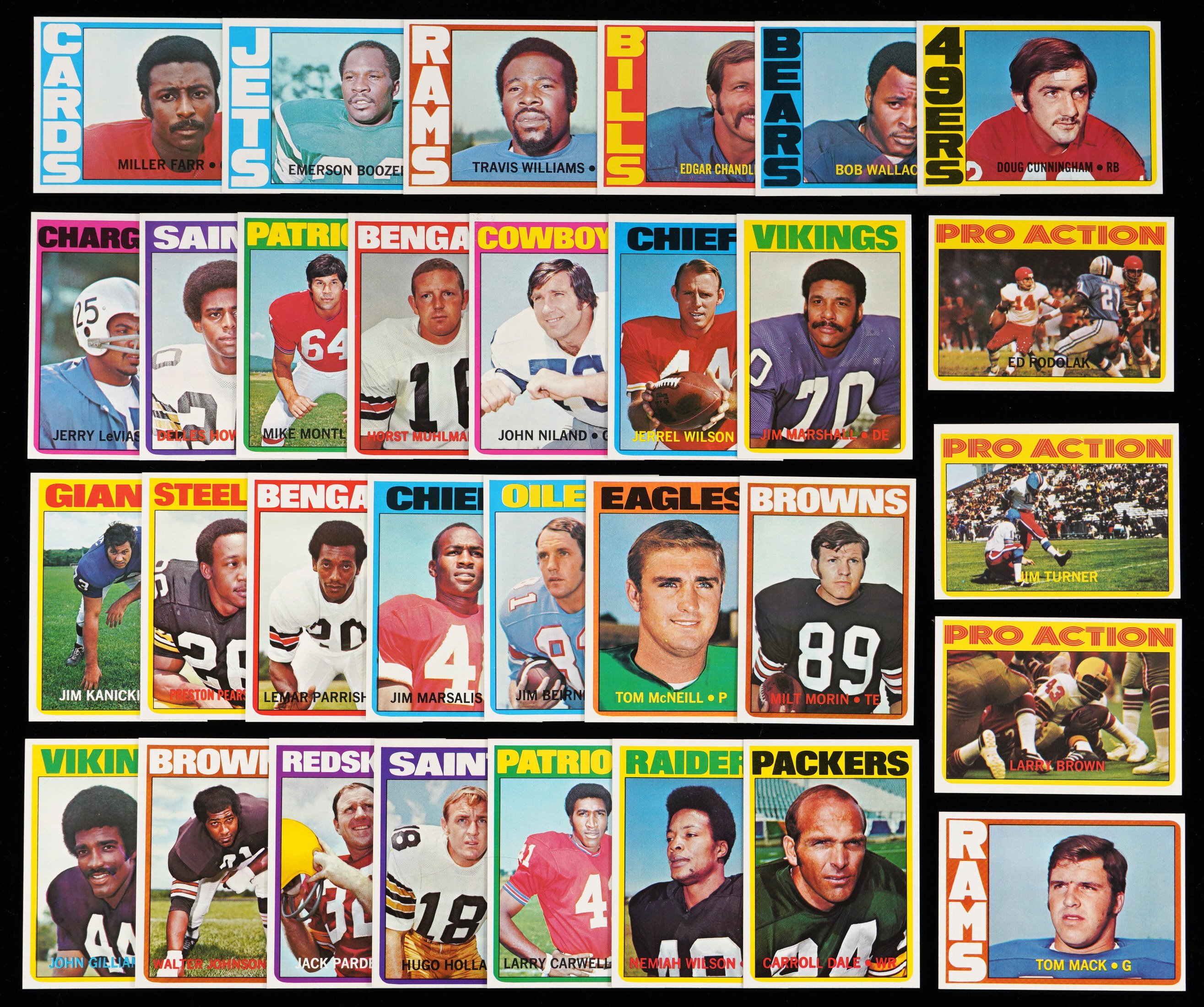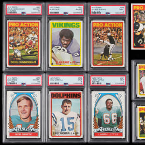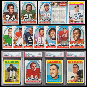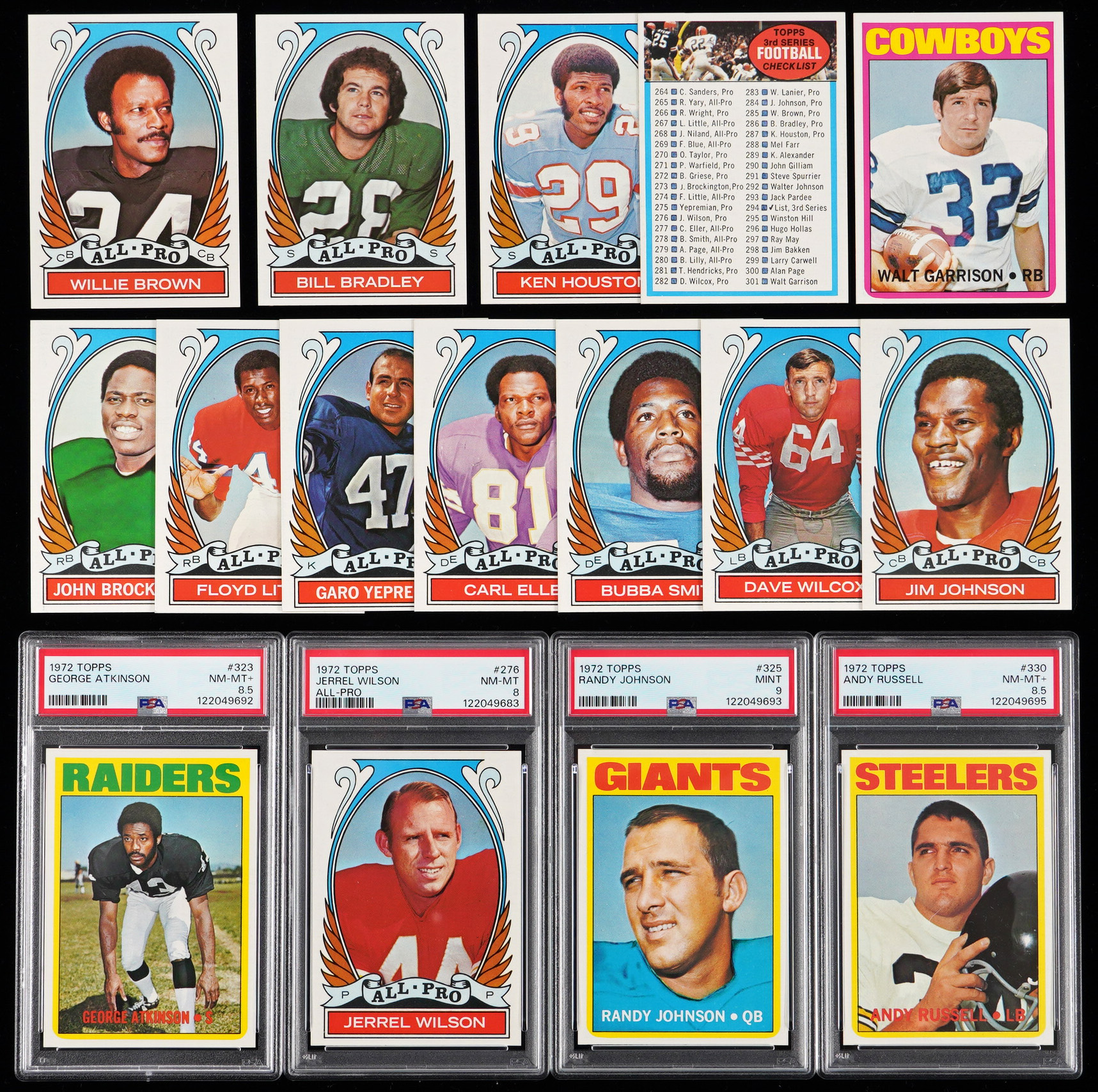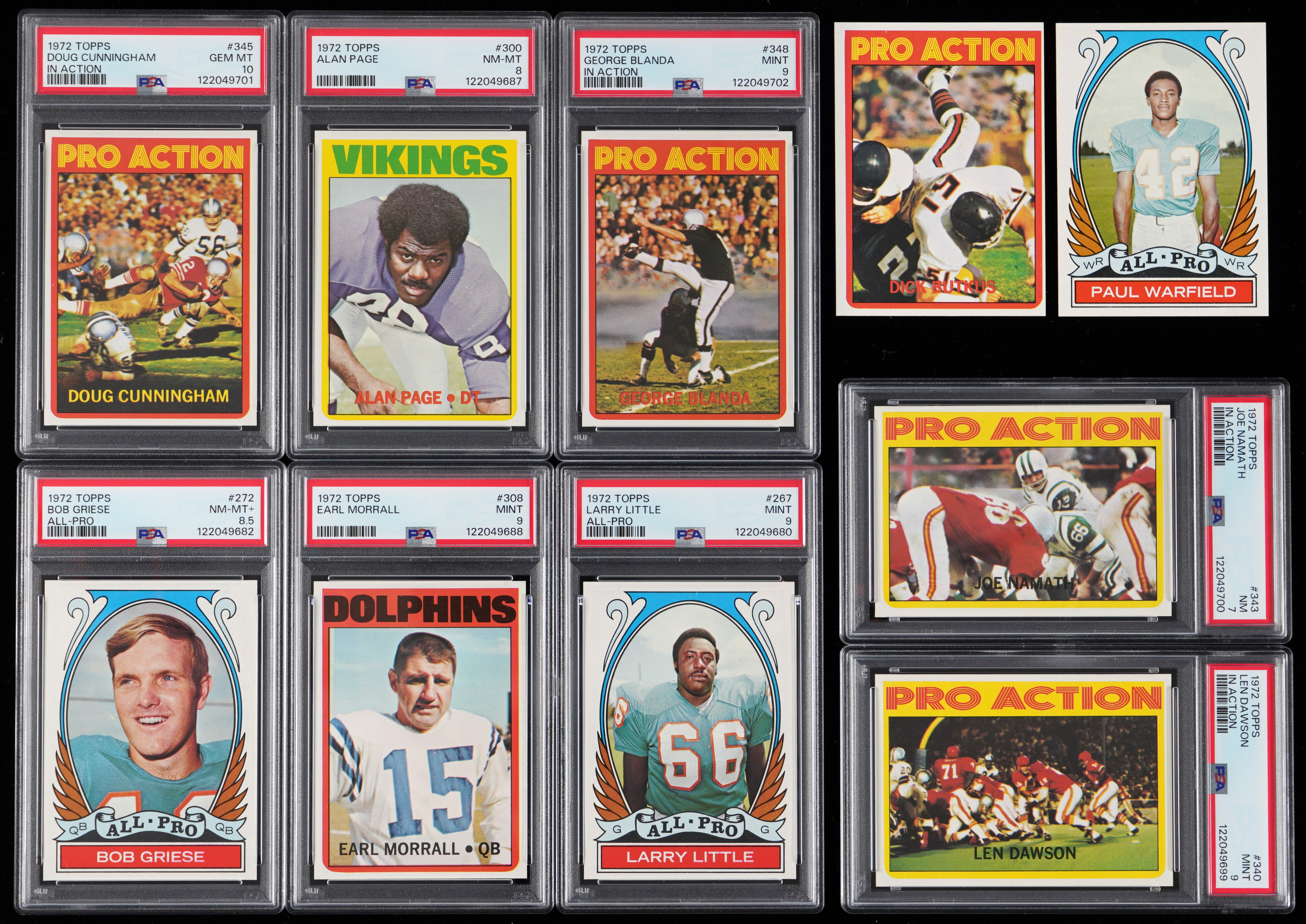 Blazing 1972 Topps Football high numbers near set of (82/88) cards featuring a dozen PSA graded NM 7 to GEM MINT 10 singles. Several potential third-party grading candidates are available in this consistently sharp assembly! Highlights include: