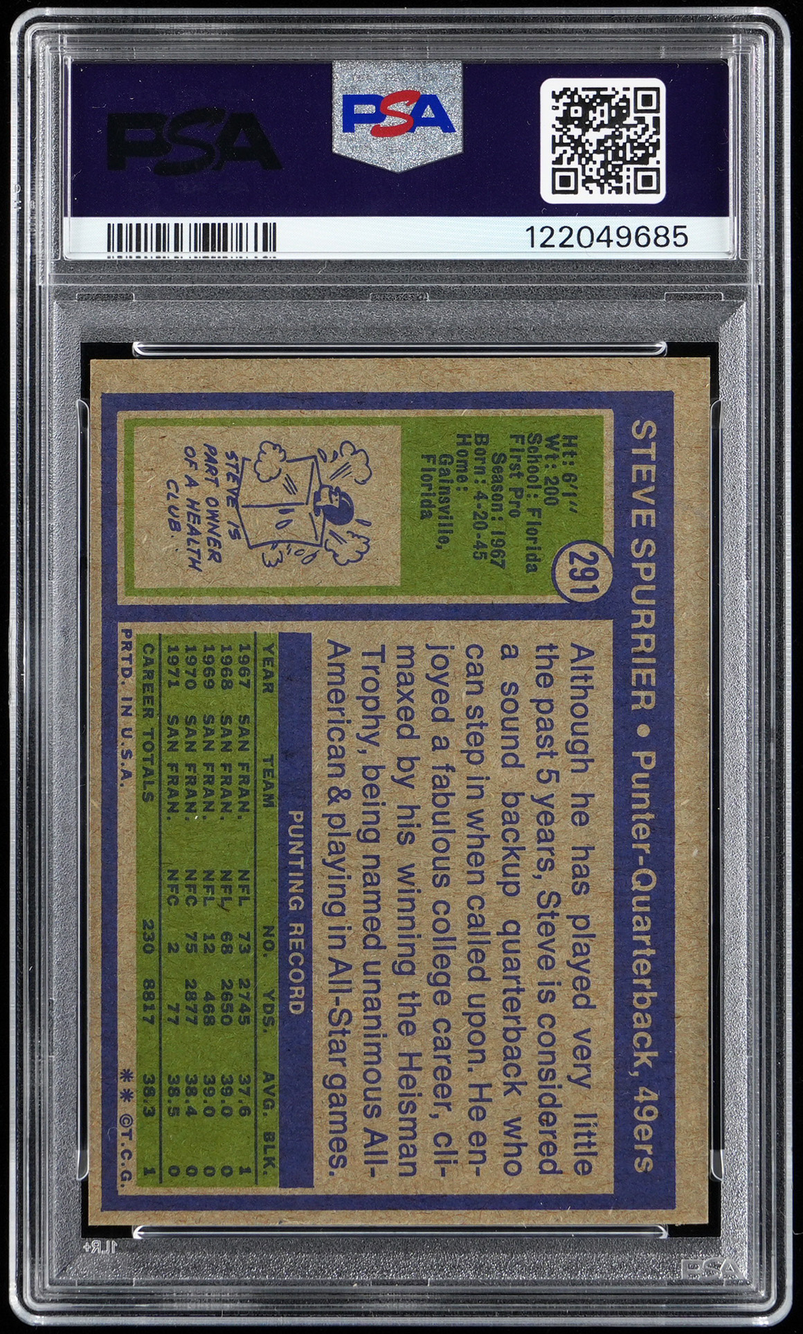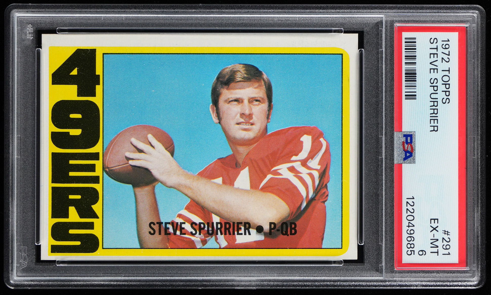 Graded EX-MT 6 by PSA. The rookie card of Heisman Trophy winner and College Football Hall of Fame coach Steve Spurrier. A tough high number of the San Francisco 49ers quarterback.