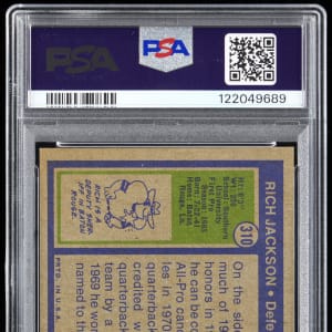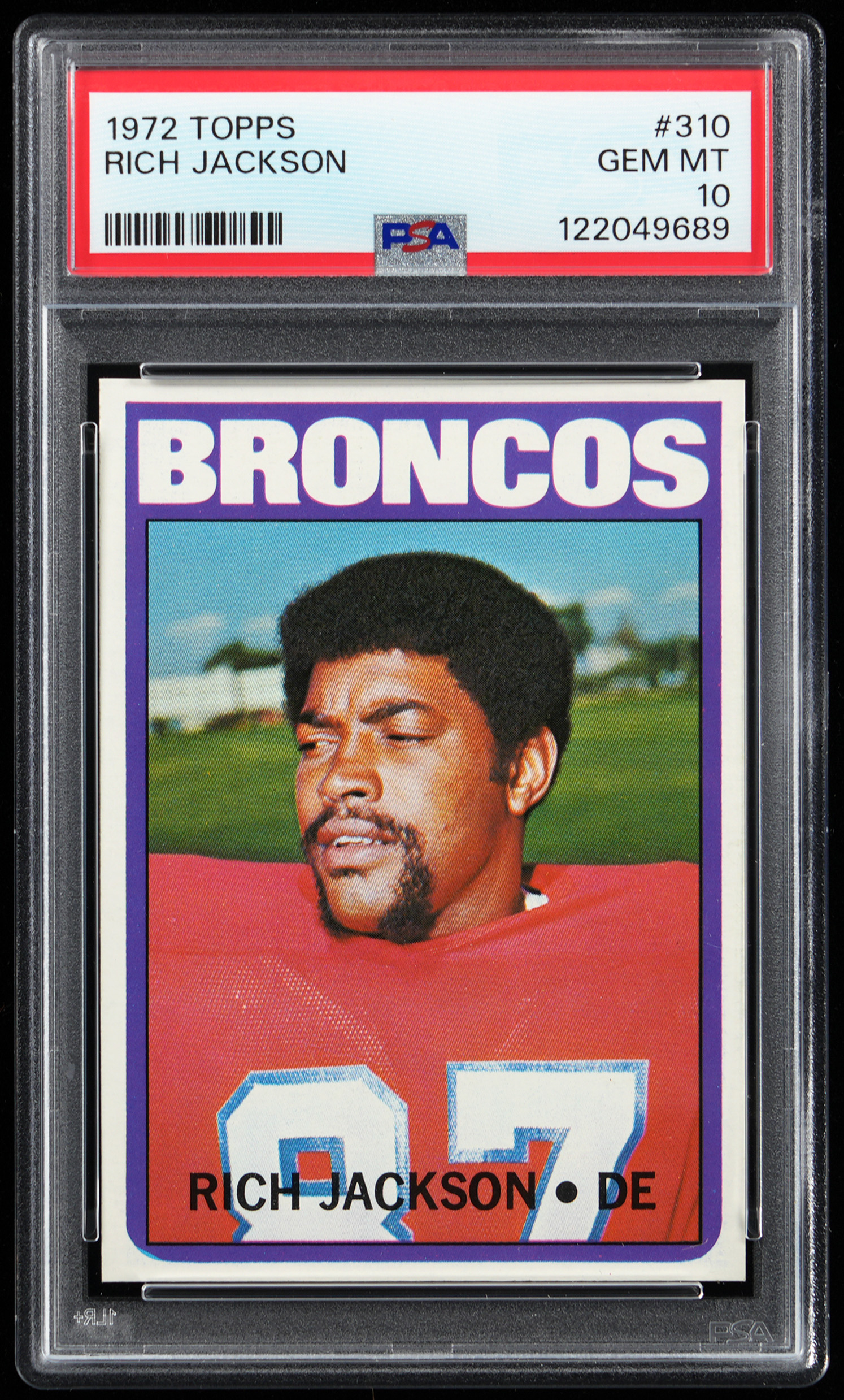Population 5! Graded GEM MINT 10 by PSA. Denver Broncos player Rich Jackson. Tough high number.