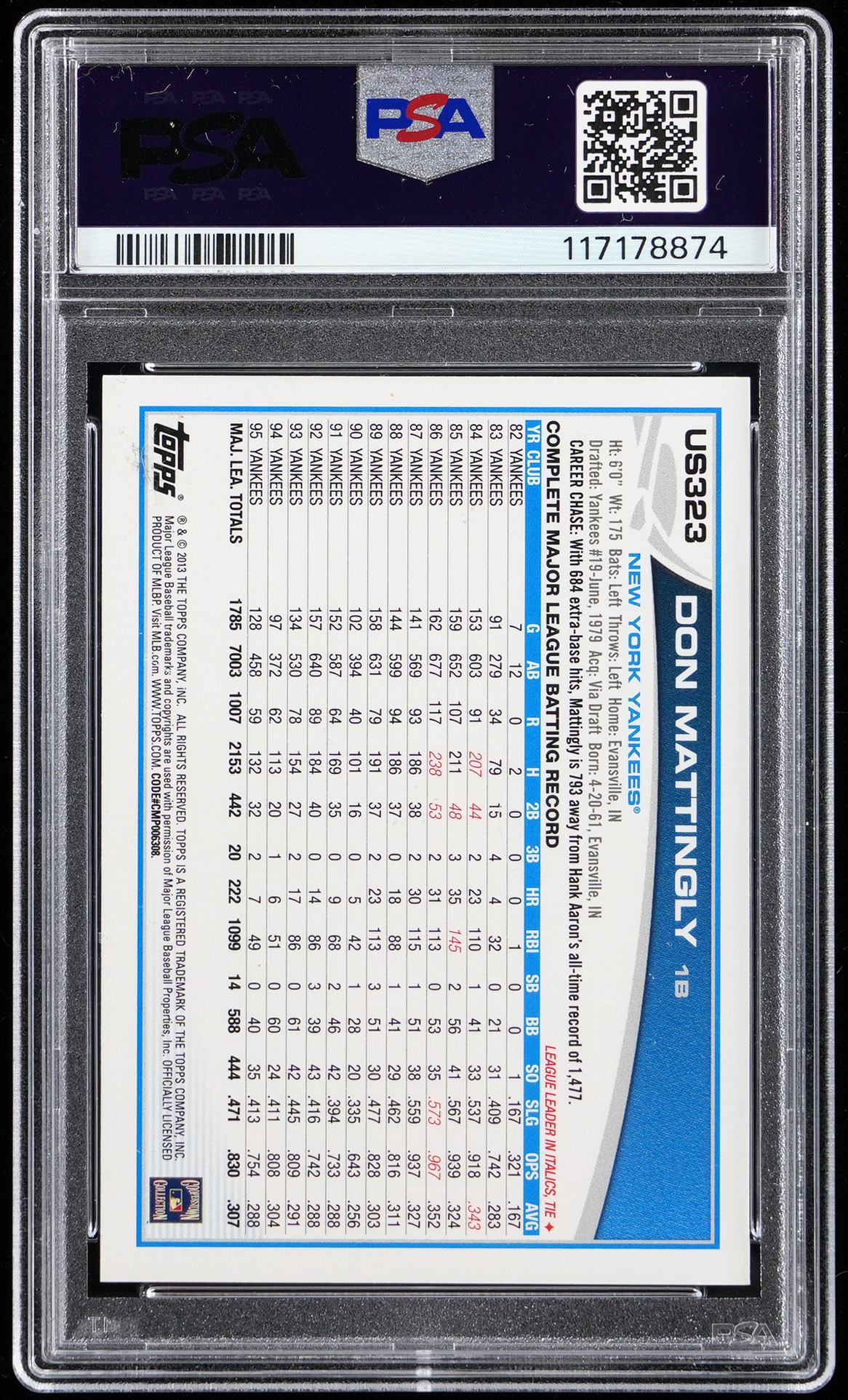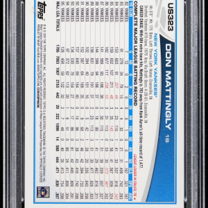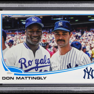 Graded MINT 9 by PSA. "Donnie Baseball" and Kansas City Royals legend Bo Jackson take center stage with the offered 2013 Topps Update #US323 shortprint. Only 17 total copies of this "pull" have been judged by the authenticator.