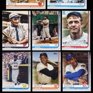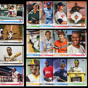Immortals from a bygone age shine brightly with the offered 2019 Topps Legends variations near set of (87/90) cards. Features shortprinted Hall of Famers and stars from both the flagship and Update product lines. Includes: #10 Koufax, #21 O. Smith, #46 F. Thomas, #57 Ryan, #100 Aaron, #150 Mattingly, #172 Piazza, #176 Cobb, #178 J. Robinson, #230 Gehrig, #238 Henderson, #253 Clemente, #260 R. Jackson, #262 Boggs, #276 B. Robinson, #280 Gibson, #289 McGwire, #330 B. Jackson, #344 P. Martinez, #350 Yastrzemski, #370 Brock, #373 Fisk, #374 Morgan, #377 R. Alomar, #381 Strawberry, #385 Murphy, #387 Spahn, #428 W. Clark, #431 Stargell, #436 E. Martinez, #437 Mize, #460 Banks, #477 Kaline, #486 Ford, #501 Feller, #503 Maris, #505 M. Rivera, #507 Reese, #514 Gwynn, #518 Clemens, #525 Sandberg, #529 F. Robinson, #542 Murray, #545 Bagwell, #551 Hornsby, #564 Ott, #565 Hunter, #568 Killebrew, #573 Bench, #574 Mathewson, #579 Speaker, #587 C. Jones, #590 Larkin, #591 G. Carter, #594 Irvin, #622 Wagner, #623 Musial, #631 Carew, #646 Dawson, #653 Winfield, #665 Snider, #675 V. Guerrero, #676 Mathews, #676 Yount, #679 Dean, #680 McCovey, #690 Brett, #692 Eckersley, #694 Ortiz, #US21 Mays, #US56 Gwynn, #US79 J. Robinson, #US128 Munson, #US133 Mays, #US165 Murray, #US168 Yount, #US179 M. Rivera, #US182 Bench, #US187 Clemente, #US202 Brett, #US219 Ryan, #US237 R. Johnson, #US245 Yastrzemski, #US269 Sandberg, #US283 E. Martinez, #US295 Halladay and #US300 Mussina.