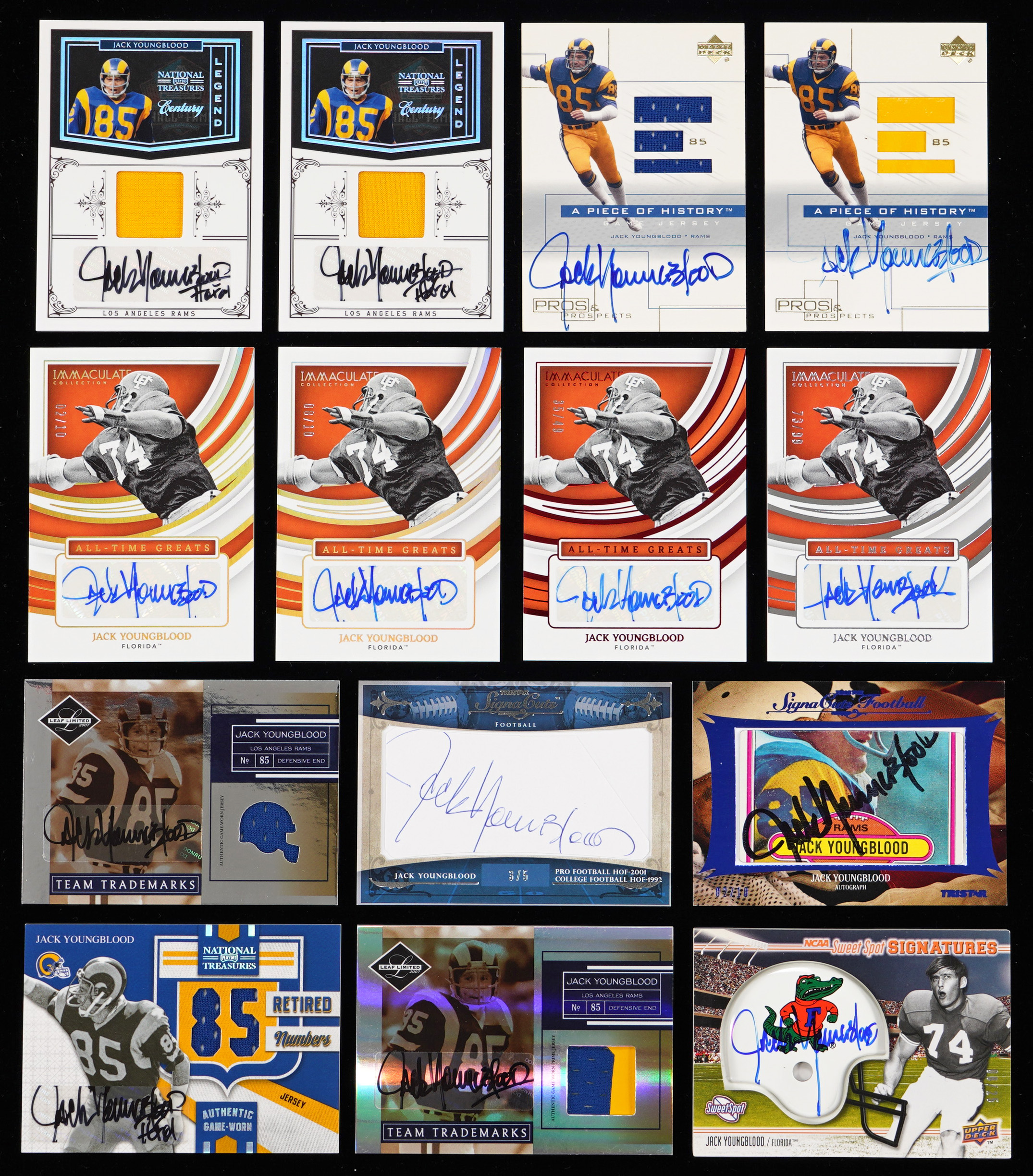 Known as the “toughest player ever,” Los Angeles Rams Hall of Famer Jack Youngblood was a menace to opposing offenses who once starred in a playoff game with a broken leg. Presented is a certified autograph collection of (35) cards dedicated to the gridiron warrior. Includes: