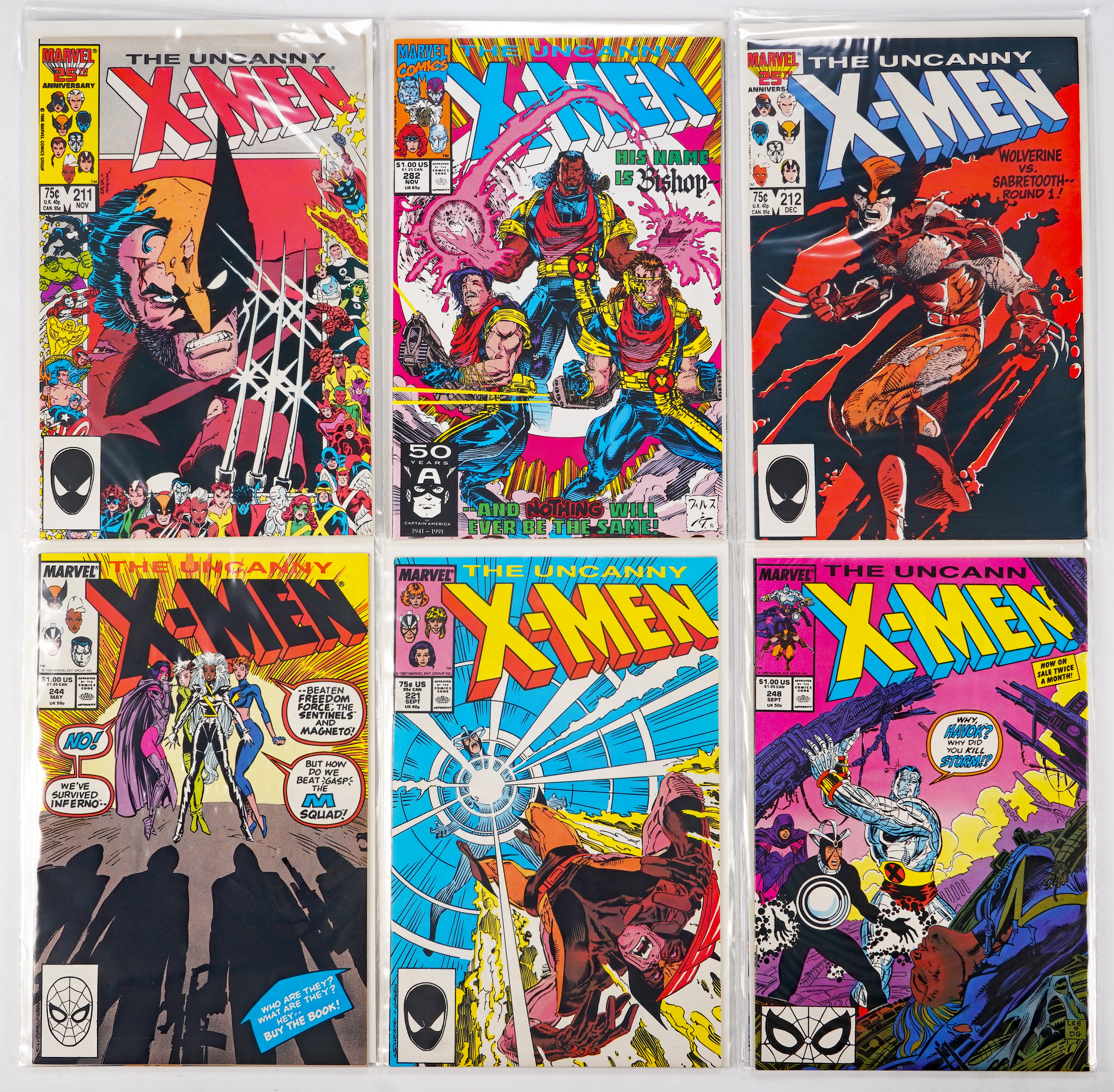 The X-Men 1st Series (10) with: #211 Mutant Massacre, #212 Wolverine vs. Sabretooth, #213 Wolverine vs. Sabretooth, #221 first appearance of Mr. Sinister, #222 Wolverine vs. Sabretooth, #244 first appearance of Jubilee, #248 first Jim Lee art on X-Men, #267 second full appearance of Gambit, #282 first brief appearance of Bishop, #283 first full appearance of Bishop;