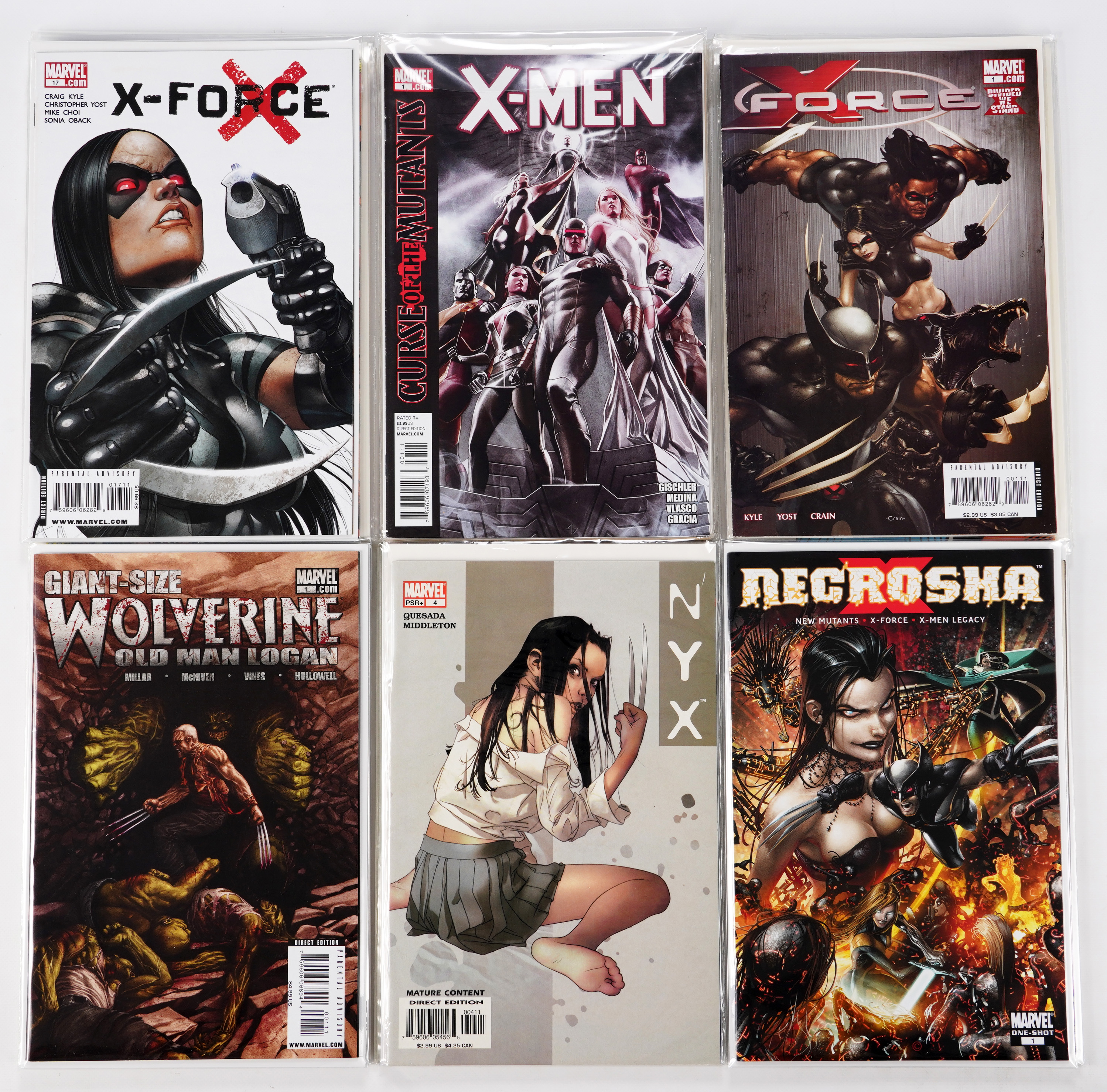 Miscellaneous (50) with: X-Men Alpha, X-Men Prime, X-Men Omega, Dark Phoenix #1, Bishop: The Last X-Man, Generation X #1, X-Men Adventures #1, Necrosia #1 one-shot Giant-Size Wolverine Old Man Logan #1, Spider-Man versus Wolverine #1, Factor X (1): 1, 2, 3, 4,X-Men Survival Guide to the Mansion, and assorted others.