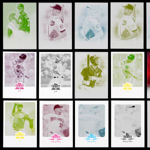 Topps Tribute Bryce Harper Near Rainbows: (16 cards) with 2013 Topps Tribute: (9 cards) with (3/4) #1/1 printing plates, #/5 red, #/25 gold, #/50 orange, #/75 green, #/99 blue, base; 2015 Topps Tribute: (7 cards) with (3/4) #1/1 printing plates, #/10 purple, #/50 black, #/99 green, base;