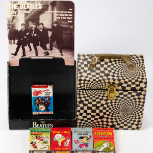 The Beatles “Flip Your Wig” 1964 Milton Bradley Board Game. Strong EX-MT to NR-MT. The interior box, board, cards and pieces of the four Beatles are basically unused. The lid has some problems near a corner but is otherwise very strong.