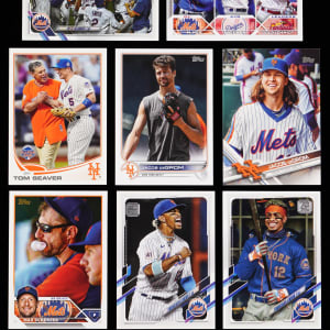 Flushing’s favorites are well represented with the offered 1980-2023 Topps New York Mets collection of (1,975+) cards. Several team sets are delivered in this collection that also includes flagship and Traded/Update issues. Limited duplication is found throughout this average (NM to Mint) wrecking crew. The overall decade quantity breakdown is as follows: (355) 1980s (1980 Topps is somewhat lesser), (277) 1990s, (344) 2000s, (667) 2010s and (334) 2020s. Highlights include: (2) 1984 Topps #182 Strawberry, 1984 Topps Update #42T Gooden RC, 2001 Topps Traded #T242 Reyes RC, 2009 Topps Update #UH232 Ryan SP, 2010 Topps #377 Seaver SP, 2013 Topps Update #US1 Seaver SSP, 2013 Topps Update #US316 Wright SP, (2) 2014 Topps Update #US50 deGrom RC, 2014 Topps Update #US50 deGrom RC SP, (2) 2014 Topps Update #US57 deGrom RC, 2015 Topps #387 deGrom SP, 2016 Topps #407 Cespedes SSP, 2017 Topps #155 deGrom SSP, 2017 Topps #600 Cepedes SSP, 2018 Topps #555 deGrom, 2018 Topps #600 Seaver, 2019 Topps #200 deGrom SP, 2019 Topps #475 Alonso RC, 2019 Topps Update #US198 Alonso RC, 2021 Topps #84 Alonso SSP, 2021 Topps #489 Lindor SSP, 2021 Topps Update #1 Lindor SP, 2021 Topps Update #US1 Lindor SSP, 2022 Topps #330 deGrom SP, 2022 Topps #330 deGrom SSP, 2023 Topps #21 Scherzer SSP and 2023 Topps #43 McNeil/Freeman/Goldschmidt SSP. The size/weight of this item requires that there will be an additional shipping charge for this lot.