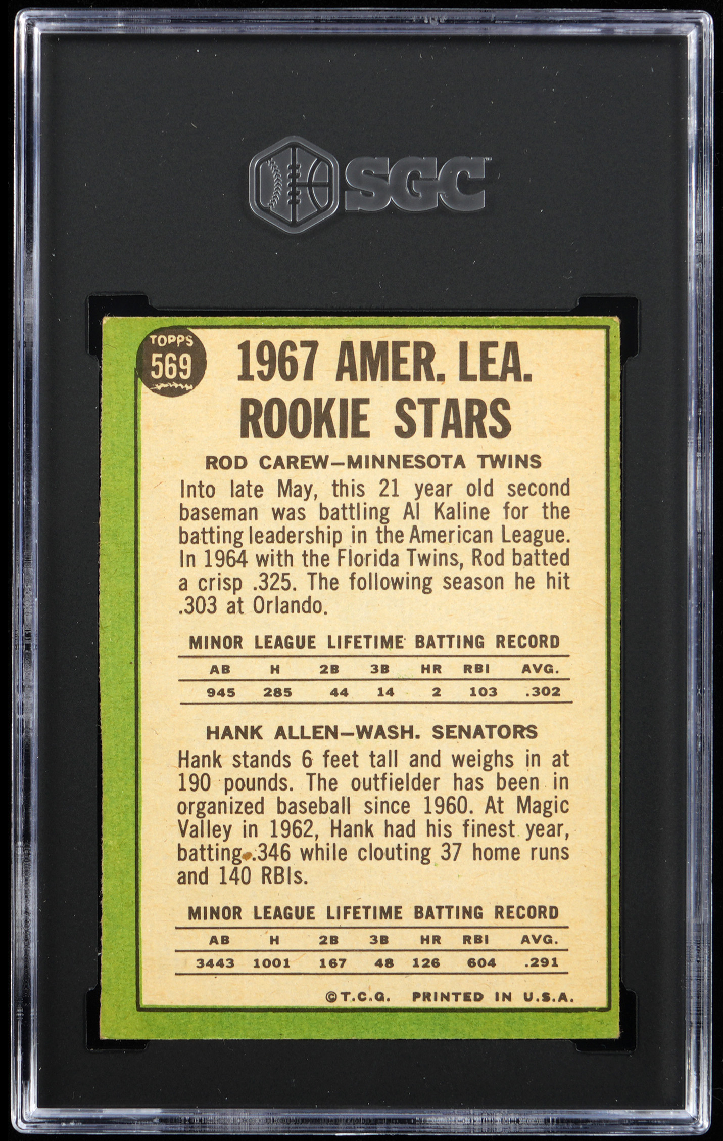 Graded VG 3 by SGC. The rookie card of Minnesota Twins Hall of Famer Rod Carew. High number.