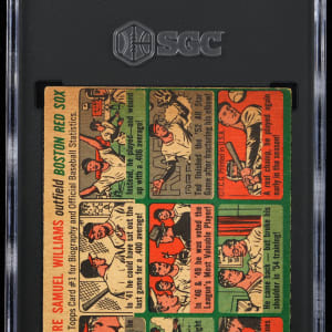 Graded VG/EX+ 4.5 by SGC. Upon his return from Korea, Topps saw fit to honor "The Splendid Splinter" not once, but twice in their baseball series. The offered 1954 Topps #250 Ted Williams bookend card presents on point with its technical grade. Boston Red Sox Hall of Famer.