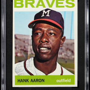Graded EX/NM 6 by SGC. Standout 1964 Topps #300 Hank Aaron. Milwaukee Braves Hall of Fame slugger.