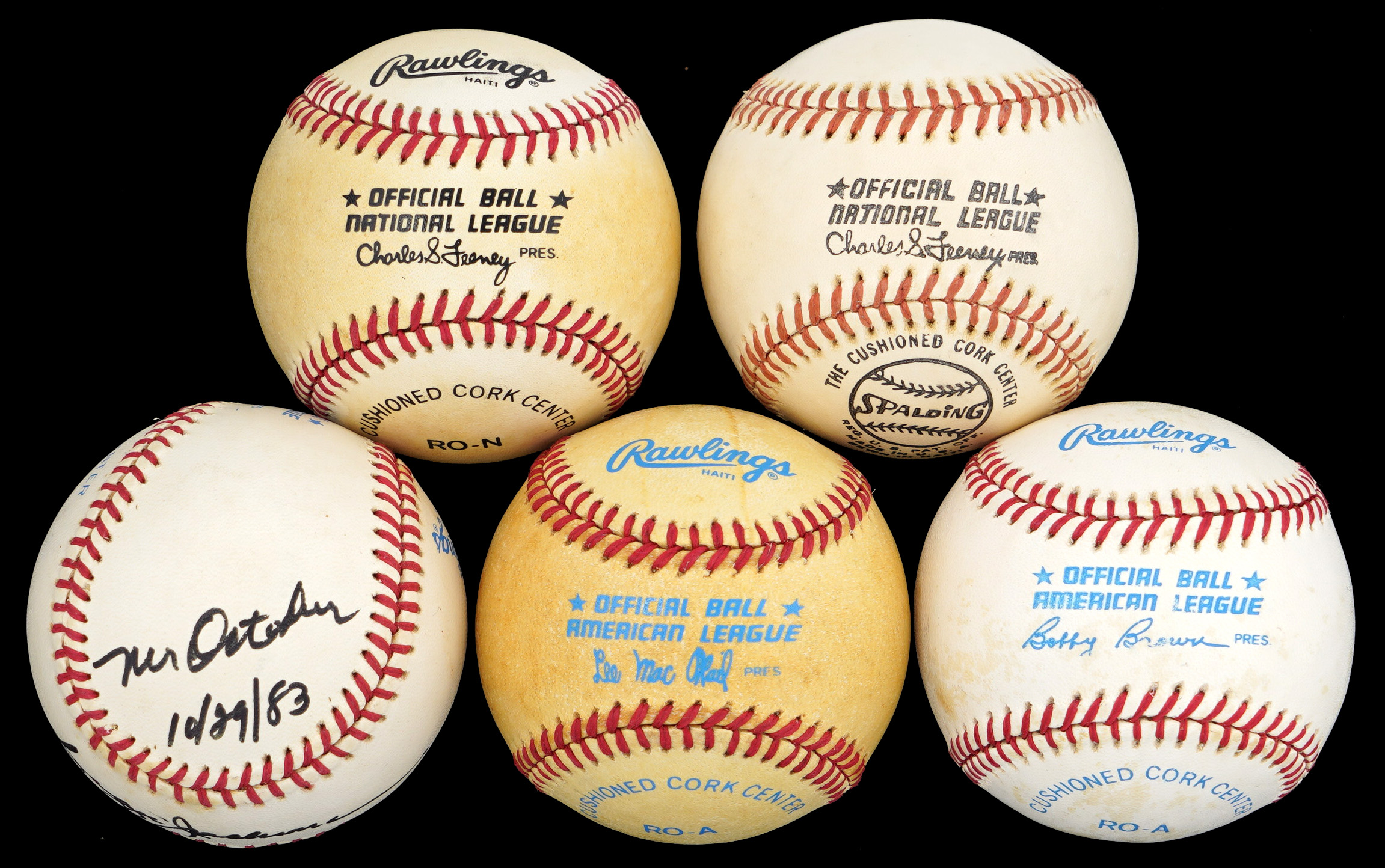 Reggie Jackson. (“8-9”) signature on sweet spot with inscription “Mr. October 10/29/83” on panel above. On creamy white OAL/McPhail ball.