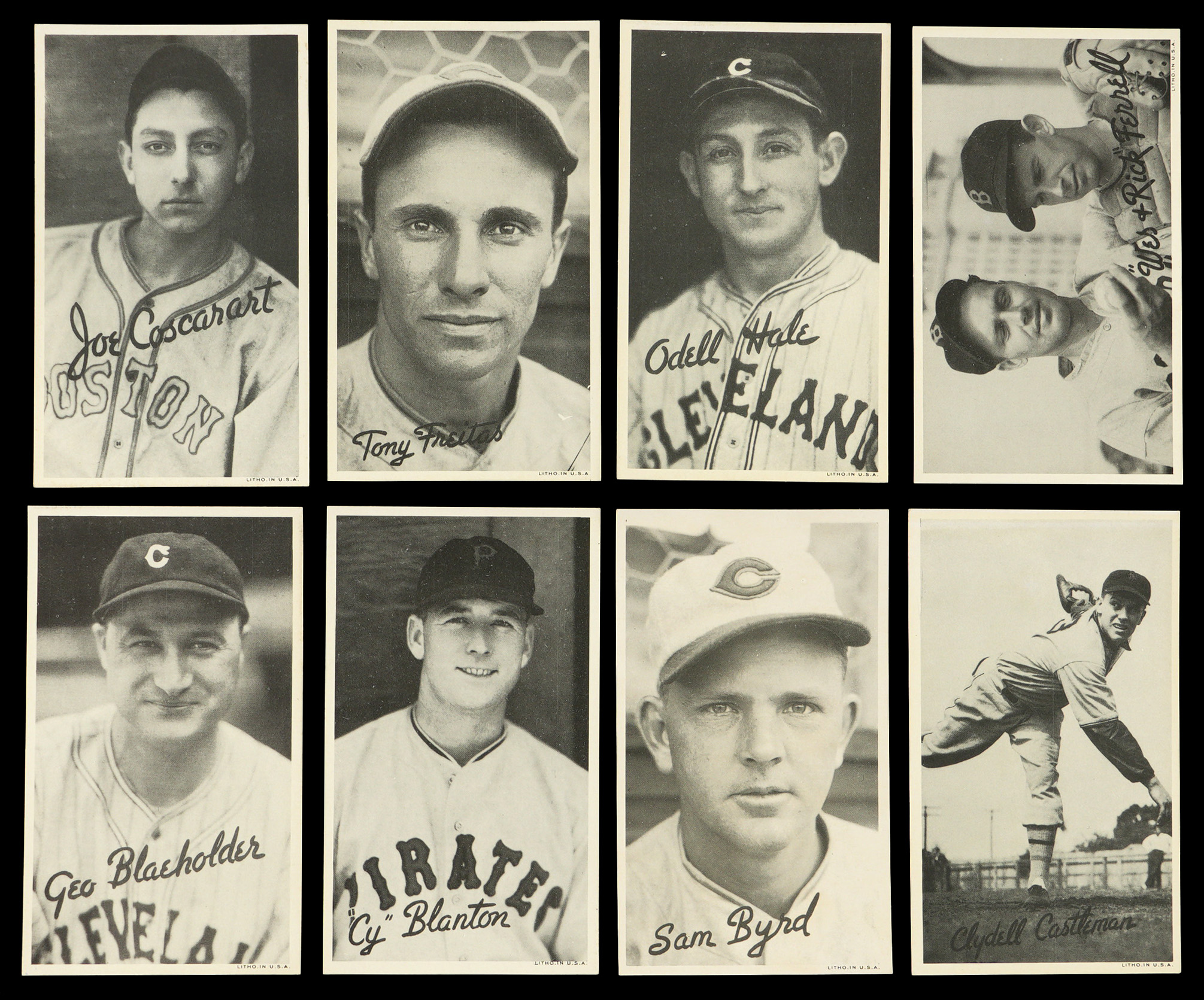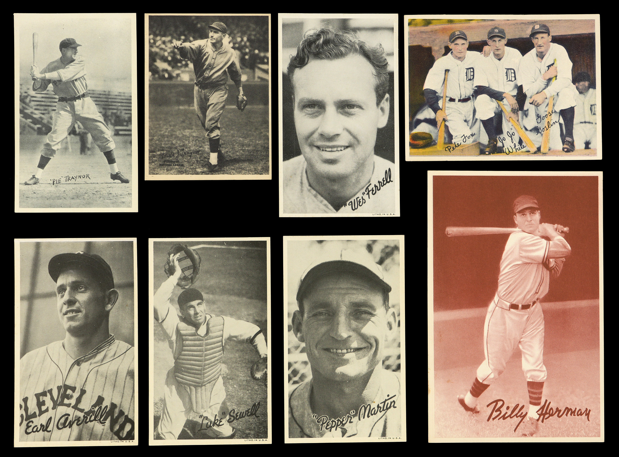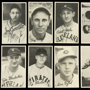 1936 R314 Goudey Wide Pens: (23 cards, average EX to EX-MT) with Averill (EX), Blaeholder, Blanton, Byrd, Castleman, Coscarart, Ferrell Brothers (EX), W. Ferrell, Freitas, Hale, Hallahan, Jensen, B. Johnson, Lary, Leslie, Marcum, P. Martin, McNair, R. Moore, Pytlak, Riggs, L. Sewell, Sullivan;