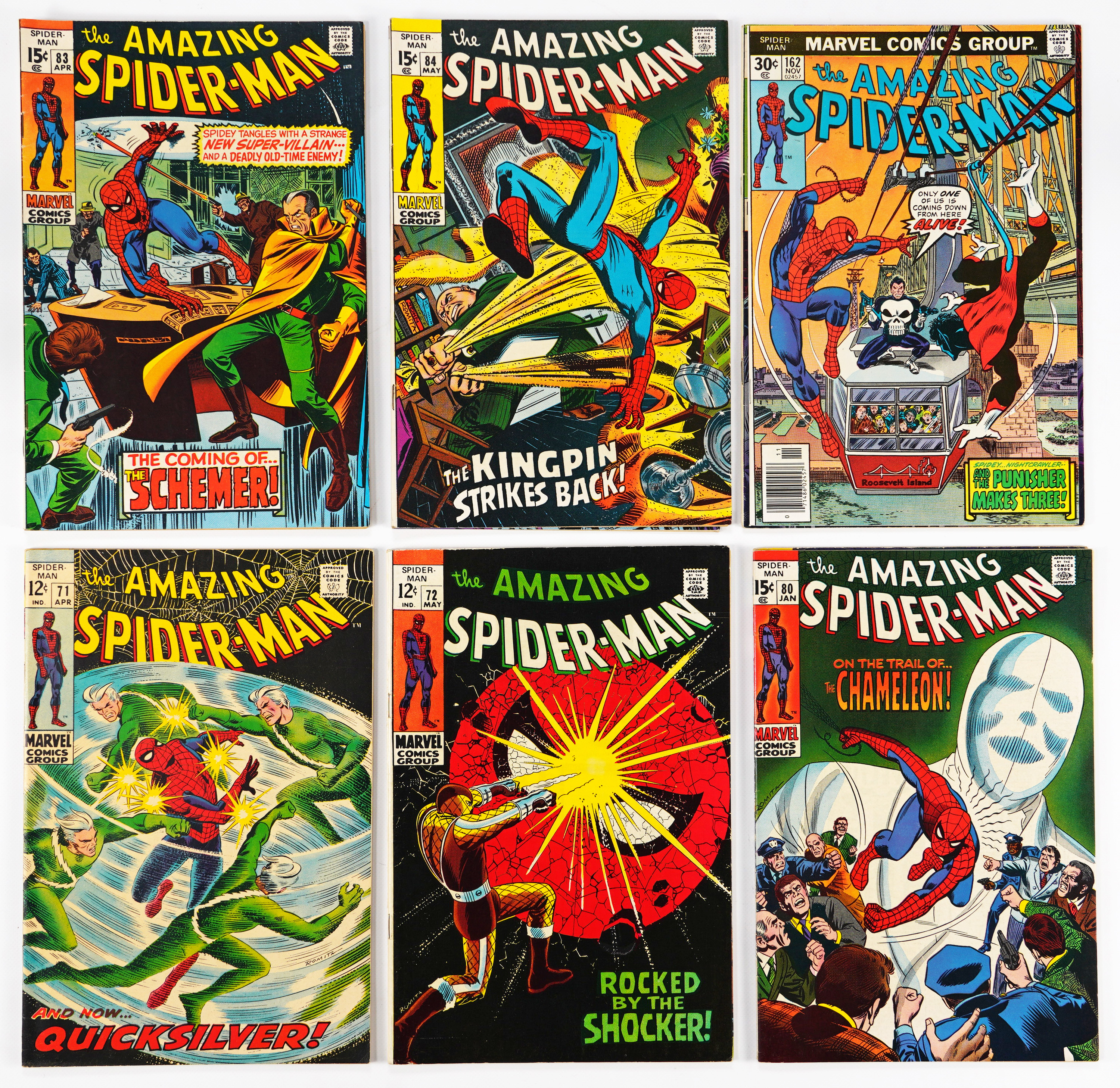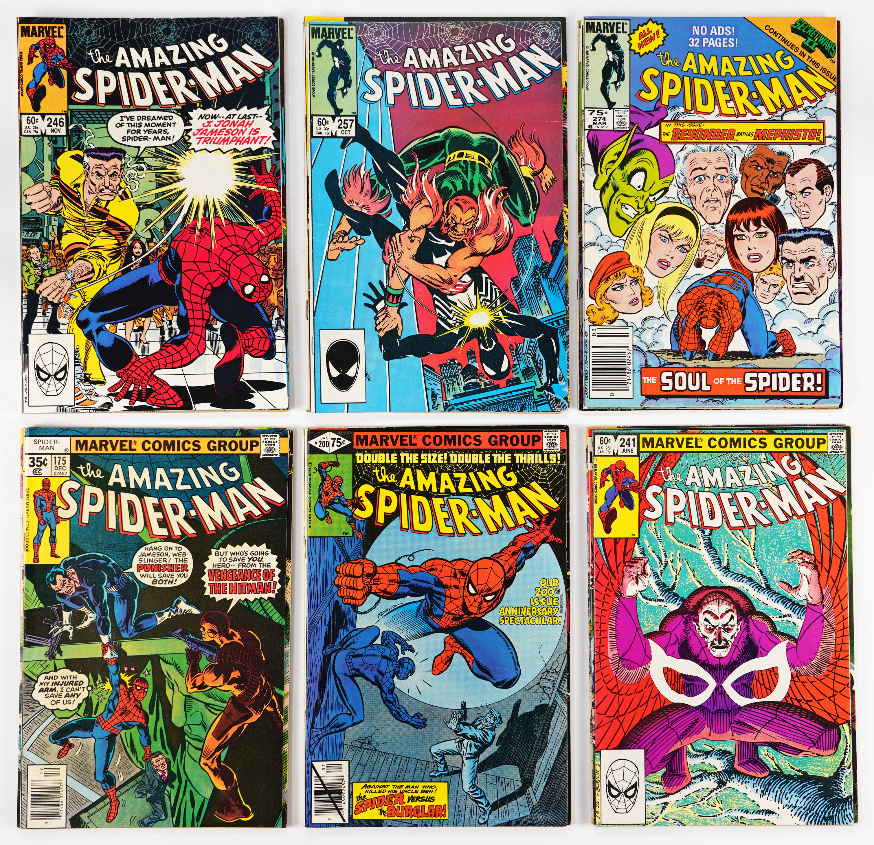 Balance range FN-VF to NM: #70 first appearance of Vanessa Fisk, #71 Quicksilver cover, #72 Shocker cover, #80 Chameleon cover, #83 first appearance of Schemer, #84 Kingpin cover, #162 Punisher and Night Crawler cover, #175 Punisher cover, #200 giant origin issue, #241 Vulture cover, #246 J. Jonah Jameson cover, #257 Hobgoblin cameo, #274 Secret Wars II crossover, #276 Hobgoblin appearance, #284 Punisher appearance, Hobgoblin cover/story, #286 Hobgoblin cover.