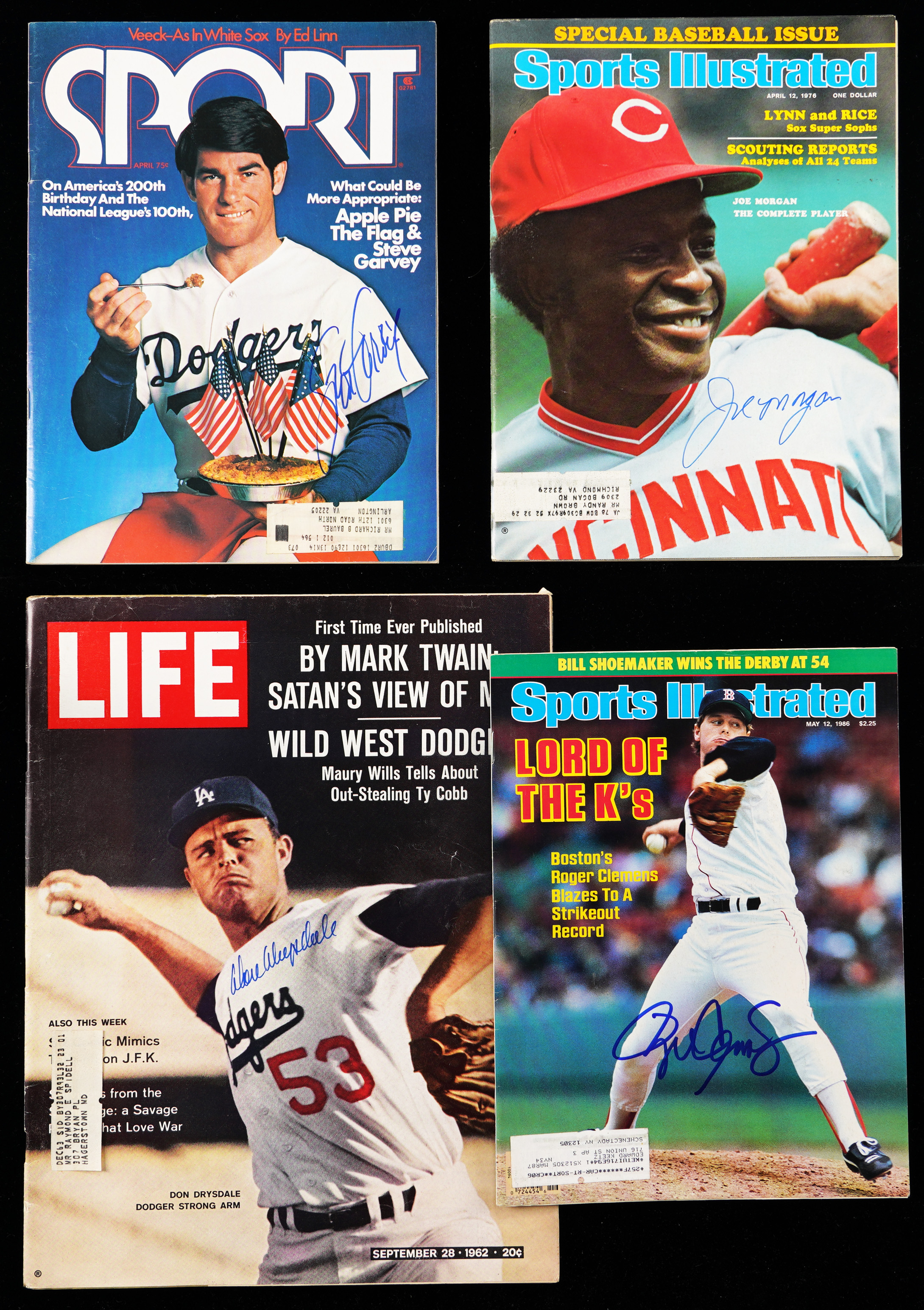 Bob Gibson (1971 Black Sports), Mike Schmidt (1990 Mike Schmidt Night program), Tom Glavine (1992 Beckett Baseball Monthly), Johnny Bench (Sport World), Sam Horn (Baseball Card Magazine), Warren Spahn (Family Weekly Sunday News), Don Drysdale (1962 LIFE magazine), Steve Garvey (Sport Magazine), Pete Rose (Price Guide).