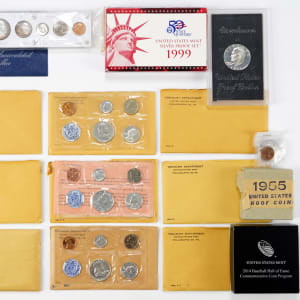 Dig deep to score this mother lode of (182) packaged coin sets and singles. Dating from 1955-2014, these untouched coins are housed in the original packaging, in pristine state, with exception to two sets that were placed in display holders, and even those are in gem uncirculated state. A great number of sets contain silver coins, and this beefy bundle adds up to considerable value. This monster hoard tips the scale at a significant weight, and pick up at our Silver Spring, MD. location is encouraged.