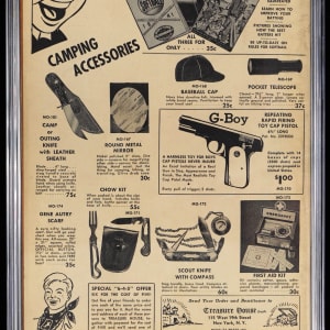 Ding, ding, ding, the battle between Dick Cole and his Farr Military Academy rival Simba Karno goes into "Round 3", with this 8/41 Novelty Press Blue Bolt Vol.2, #3 issue. This schoolmate clash of boys raised to be physically superior began two issues early, and all three issues of the story arc are featured in this auction. In the end, Simba's better nature won out, and he and Dick became partners in combatting evil. This WWII era comic is CGC graded 1.5, Brittle Pages. Despite the low score, this ancient issue positions as a nice find, as CGC has only encapsulated four examples to date, indicating considerable scarcity, and the cover presents much better than the assigned grade. When it comes to comic books from this time period, the survival rate is small. Those in possession of the best examples, are rarely willing to part with them, so finding a book in any grade is a welcome opportunity for dedicated collectors. Label notes are "Paul Gustavson art".