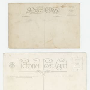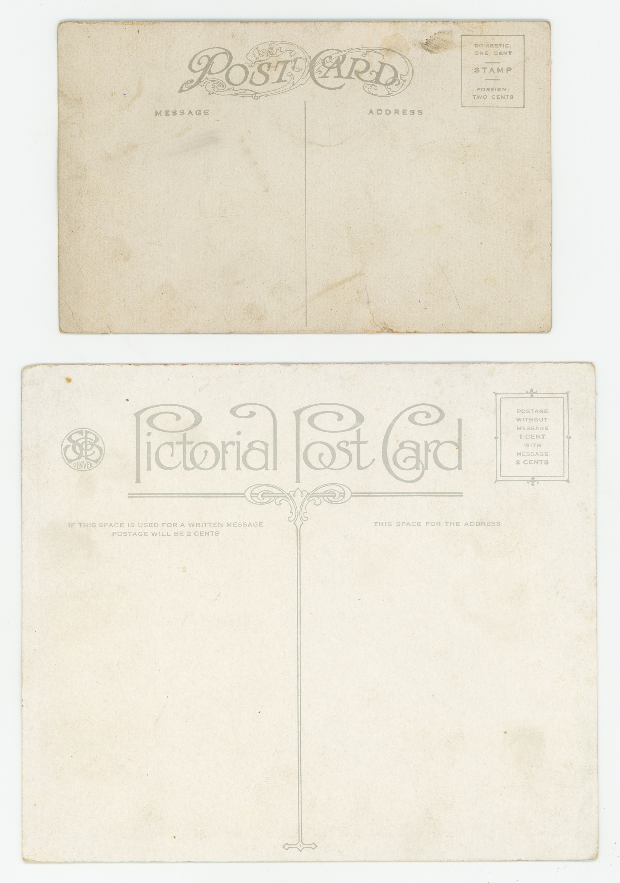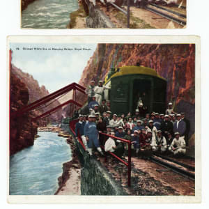 On their way west to their 1910 Spring Training in San Francisco, the Chicago White Sox made a tourist stop for a photo opportunity at the Royal Gorge Hanging Bridge, on February 27th. This memorable moment is captured with these (2) circa 1910-1911 postcards. Being of different sizes, these antique souvenirs depict the same scene, with White Sox players and family gathered around the caboose of a D&RG train. Measuring 6-3/8" x 5-1/2", is an oversized postcard that stacks up as an exciting find. This large format card reports in pleasing VG+ condition, with a bright, clean obverse, and an unused reverse. Printed at top-left on the obverse is "84. Chicago White Sox on Hanging Bridge, Royal Gorge.". Also unused, the standard size 5-1/2" x 3-1/2" postcard rates as FR, and is printed at top-left with "421. Chicago White Sox in The Royal Gorge, Colo.". Some of the more notable 1910 White Sox members are Hall of Famers Ed Walsh and Hugh Duffy, and stars Lena Blackburne, Harry Lord, "Shano" Collins, "Doc" White, and "Chick" Gandil, who was the infamous ringleader of the 1919 "Black Sox".