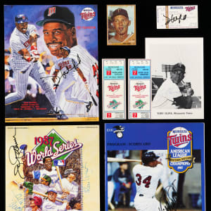 Signed Flats (7) with Tony Oliva (Picture Pack photo), Dave Winfield (3000th Hit commemorative), Tony Oliva (magazine page photo), Kent Hrbek 1983 Twins Postcard.
