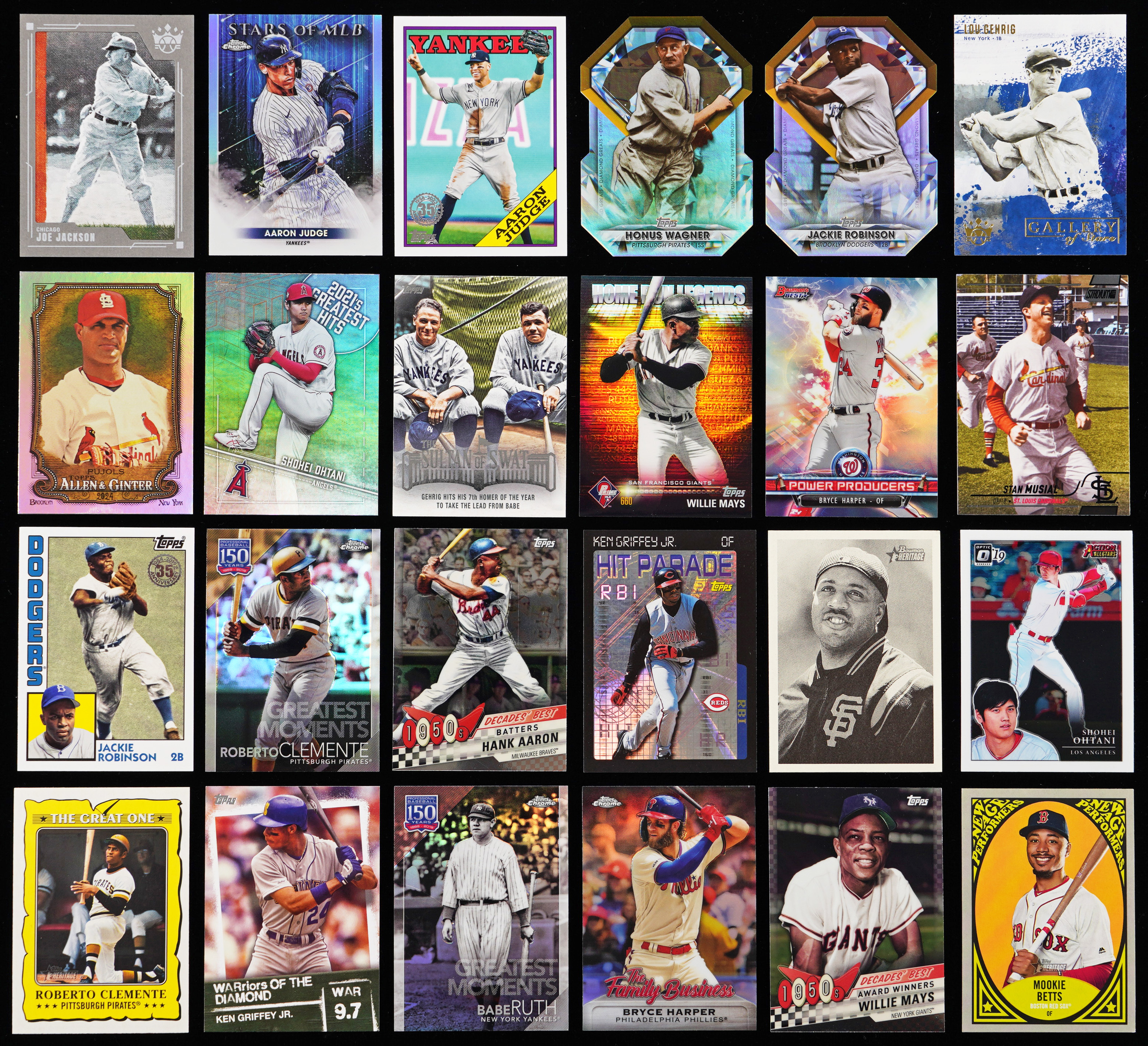 Break Value! Ignite your modern inventory with this explosive mostly post-2020s baseball singles collection of (5,800+) cards featuring a dizzying array of (2,500+) inserts! Among the base cards, large blocks of current and past superstars including Ohtani, Pujols and Trout along with smaller batches of Acuna Jr., Raleigh, Skenes, Skubal, Witt Jr. are present. The (2,500+) inserts packs incredible punch with quantities of Aaron, Acuna Jr., Betts, Bonds, Clemente, Gehrig, Griffey Jr., Harper, J. Jackson, Judge, Mays, Musial, Ohtani, Pujols, Ripken Jr., J. Robinson, Rose, Ruth, Ryan, Skubal, Soto, Trout, Wagner and T. Williams dispersed throughout.