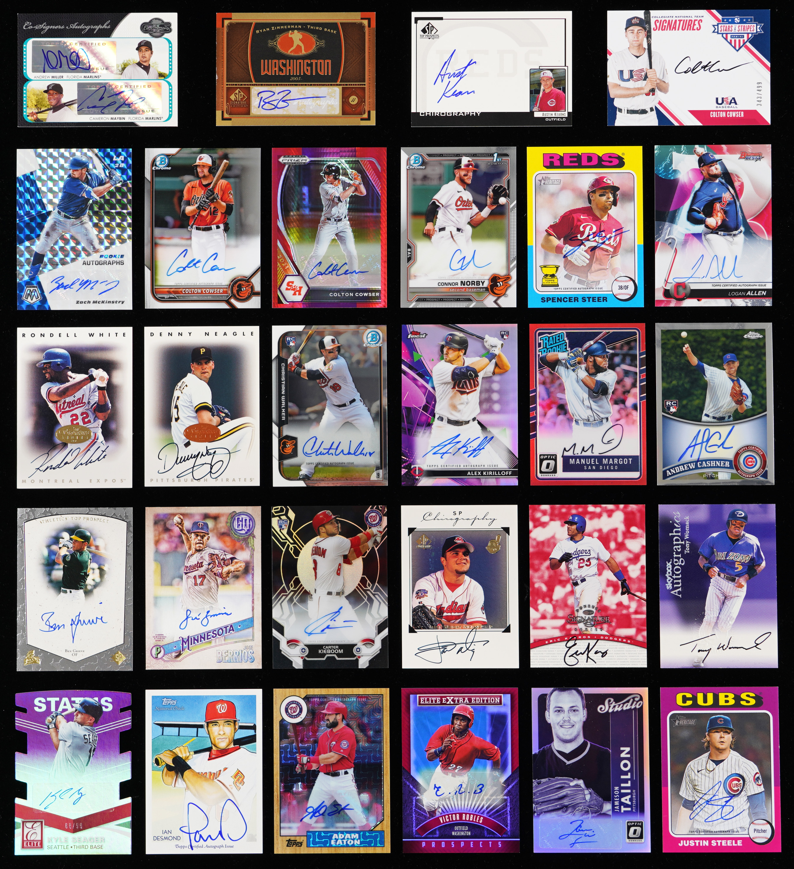 Level up your modern inventory with the offered modern baseball certified autograph collection of (750+) cards featuring numerous Hall of Famers and stars! Several of these modern inserts are numbered and come from a variety of tiered subsets. Highlights include: Buxton, Cano, Conine, N. Cruz, Dawson, Devers, Ford, Guerrero Jr., Machado, Markakis, Mayo, Molitor, Ortiz, Oswalt, Palmer, Springer, Steele, Westburg, R. Zimmerman and many more! The size/weight of this item requires that there will be an additional shipping charge for this lot.