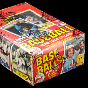 Tremendous value is offered with this 1982 Fleer unopened wax box of (36) packs. These 15-card packs (plus sticker per) could deliver high-grade Cal Ripken Jr. rookies! The entire box comes shrink-wrapped by Baseball Card Exchange (owned by Steve Hart, the foremost expert on unopened material).