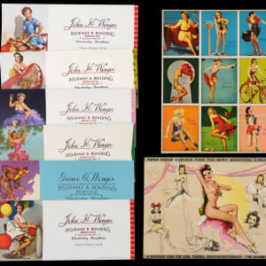 9x4 Advertising cards (23) averaging Excellent condition, from John H. Wenger Insurance and Bonding Service, Chambersburg, PA, with American Beauty-style pin up images. Cards created by Brown & Bigelow, St. Paul, MN.