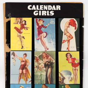12x18 “Calendar Girls” Display with (9) card images. Some pieces are missing on the black background. Good to Very Good.