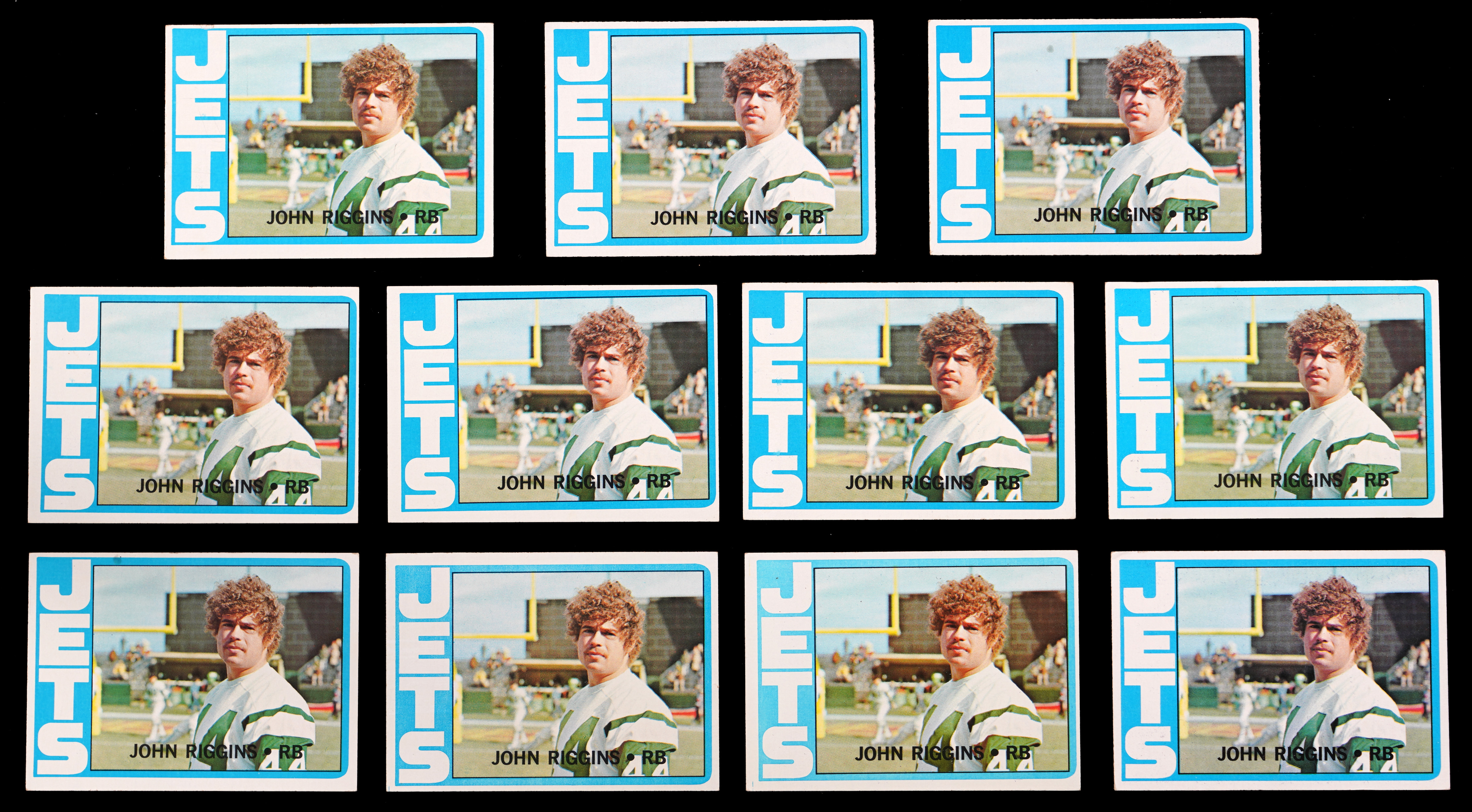 A Hall of Fame running back on the field and a talented actor off the gridiron, the renaissance man known at John Riggins brings the best of both worlds with the offered collection of keepsakes. Includes (11) 1972 Topps Football #13 rookie cards (average EX to EX-MT) plus (5) Illegal Motion Playbill and ticket stub pairs (programs average NM, with deference to four having stapled ticket stubs on the covers).