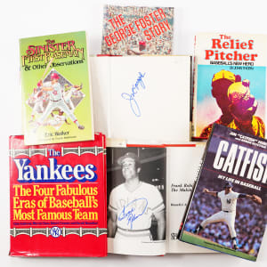 “Yankees – Illustrated History” with (48) including Rick Cerone, Mel Stottlemyre, Waite Hoyt, Whitey Witt, Mark Koenig, Ben Chapman, Ken Keltner, Nick Etten, Jim Turner, Carl Furillo, Al Gionfriddo, Johnny Sain, Bob Cerv, Johnny Mize, Duke Snider, Don Larsen (2), Ralph Houk, Tom Tresh, Joe Pepitone, Clete Boyer, Phil Linz, Steve Hamilton, Jake Gibbs, Bill Robinson, Dooley Womack, Lee MacPhail, Fritz Peterson, Dan Cater, Stan Bahnson, Ron Swoboda, Ron Bloomberg, Brian Doyle, Sparky Lyle (2), Catfish Hunter, Ron Figueroa, Mickey Rivers, Chris Chambliss, Craig Nettles, Roy White, Bucky Dent, Goose Gossage, Tommy John, Bobby Mercer, Dave Winfield, Jim Kaat.