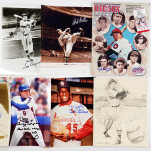 Nice signatures (avg “7 to 9”) on items in strong condition (unless noted) can be found in this box of treasures. A few signatures have inscriptions or personalization.