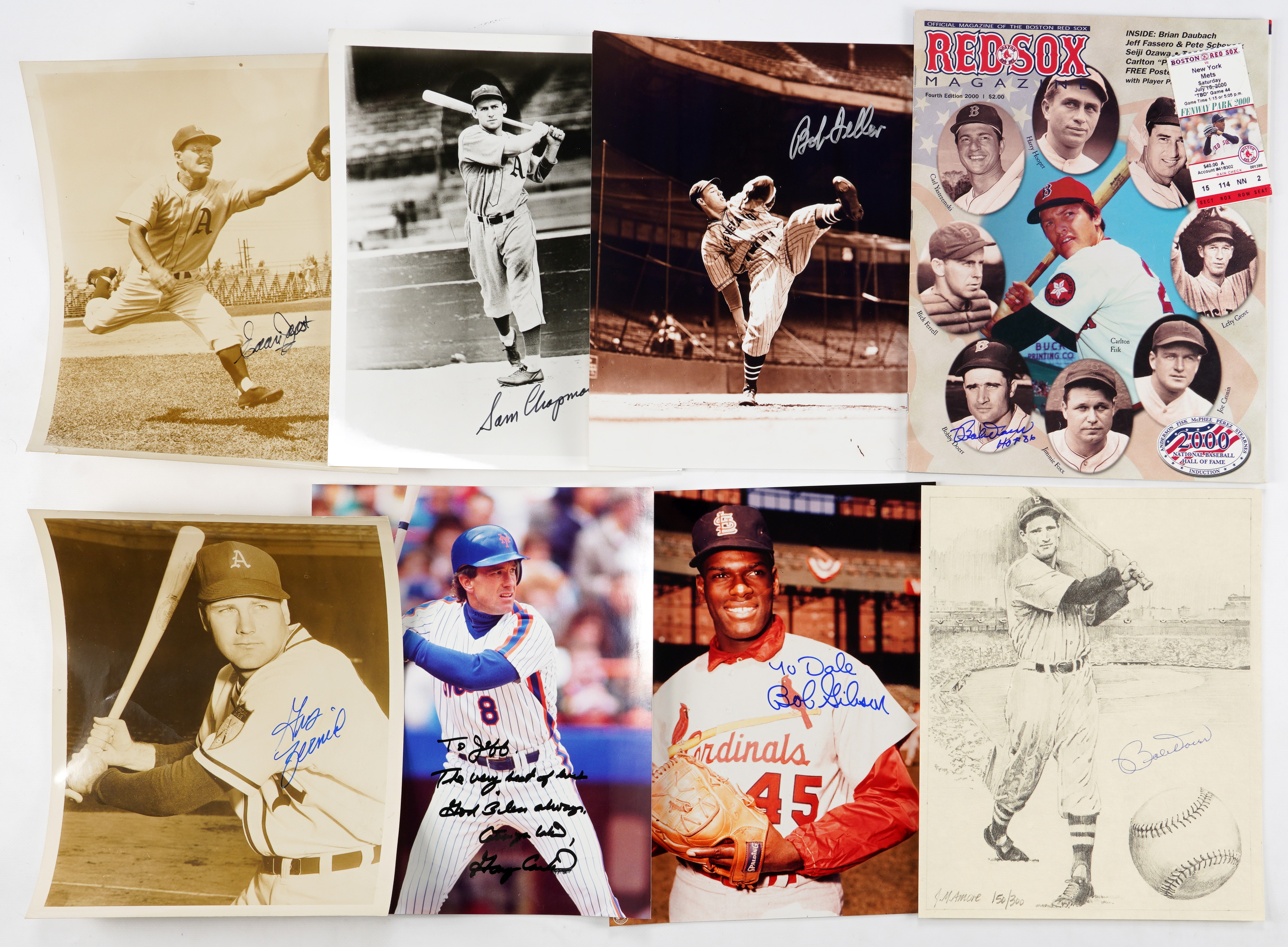 8x10 Photos (8): Bob Feller (2), Bob Gibson, Bobby Doerr, Hal Newhouser, Gary Carter, Joe Coleman, Gus Zernial, Eddie Joost, Sam Chapman.