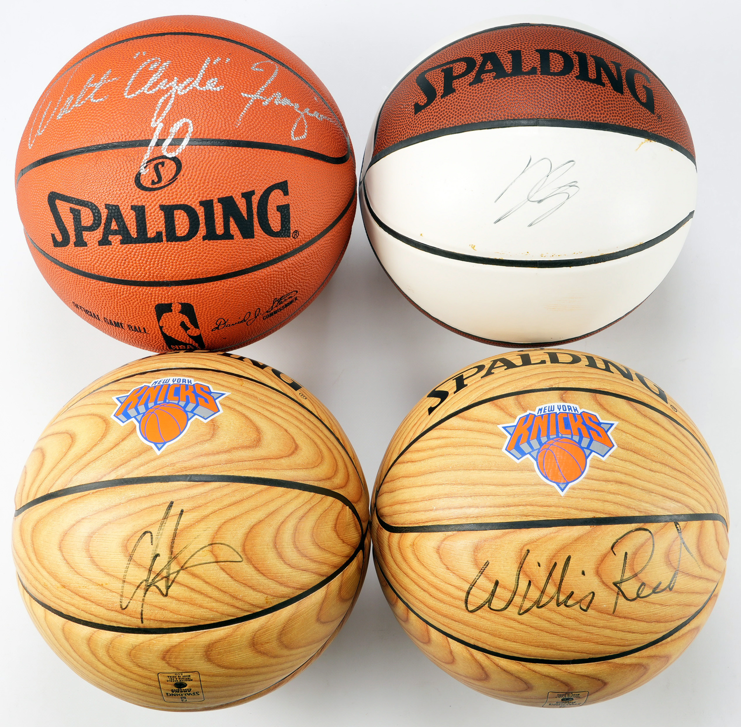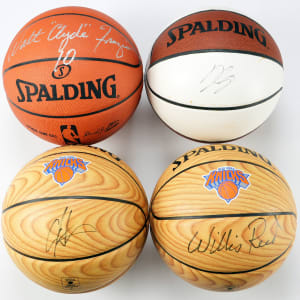 SIGNED BASKETBALLS: Carmelo Anthony (wood print ball), Willis Reed (wood print ball), Walt Frazier, Danilo Gallinari.