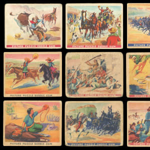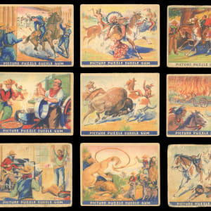 Round up a classic non-sport issue, with the capture of this 1933 R172 Gum Inc. Wild West Series complete set (48). This thrilling series takes you through the perils of the "Old West", with colorful illustrations, and compelling narratives. Focusing on events such as Davy Crockett defending of the Alamo, Custer's last stand, and a Native American Medicine Man stirring up the spirit of his fellow Braves to defend their territory, this fascinating series is riveting.
