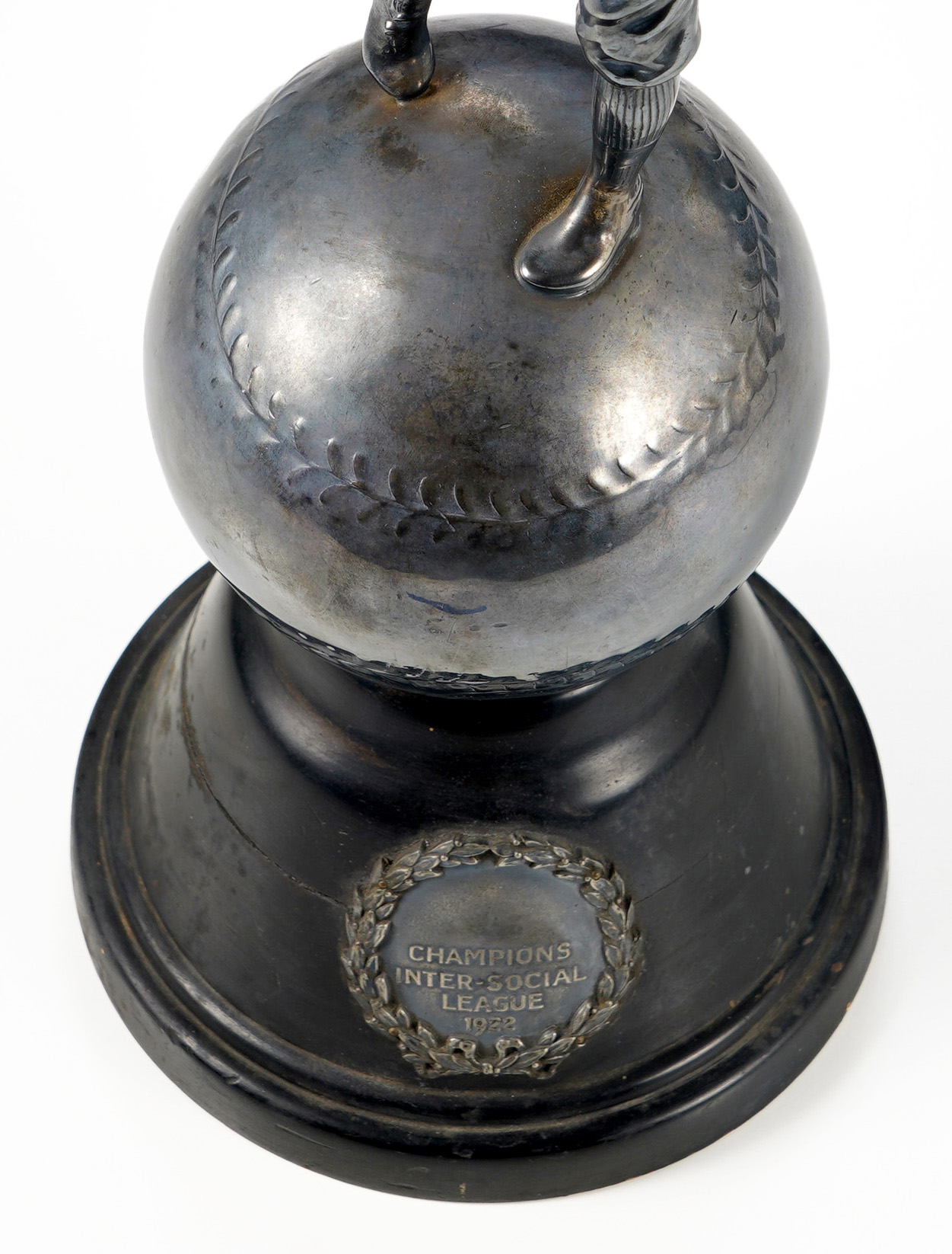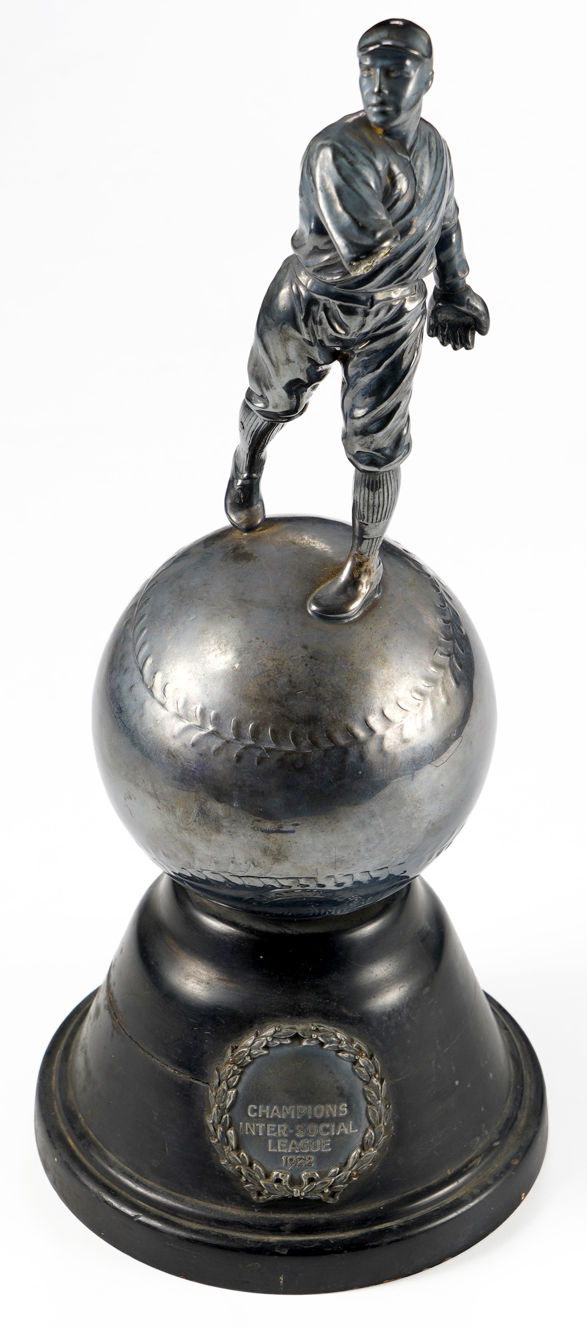 Florida has long been a hotbed for Spring Training, but once the MLB teams headed north, it was local teams that fans turned to for their diamond diversions. Founded at the dawn of the 20th Century, the Inter-Social League was a regional affiliation located in the Tampa, Florida area. Passionate Cubans settled in Tampa’s Ybor City and were a big part of the cigar business the area is well-known for. These Cubans and other ethnic groups manned the Inter-Social League teams, more for their love of the game and local bragging rights, than for financial gain. Beyond the field, these social clubs were ingrained in the local culture, serving the community in many ways. The participating squads in the 1922 Inter-Social League championship series are reported as Círculo Cubano (Cuban Circle in English) and Centro Español (Spanish Center), though the winner is a mystery. An exciting survivor from a bygone era, this antique trophy stands as a reminder of the civic pride, strong community ties and dedication to the great game of baseball displayed by hard-working immigrants, who did their part in making America a great nation.