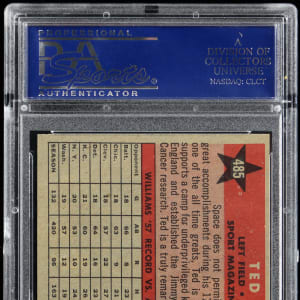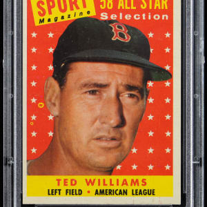 Graded NM 7 by PSA. Boston Red Sox Hall of Famer Ted Williams is pictured as an All-Star for the only time on the offered 1958 Topps #485 specialty card.