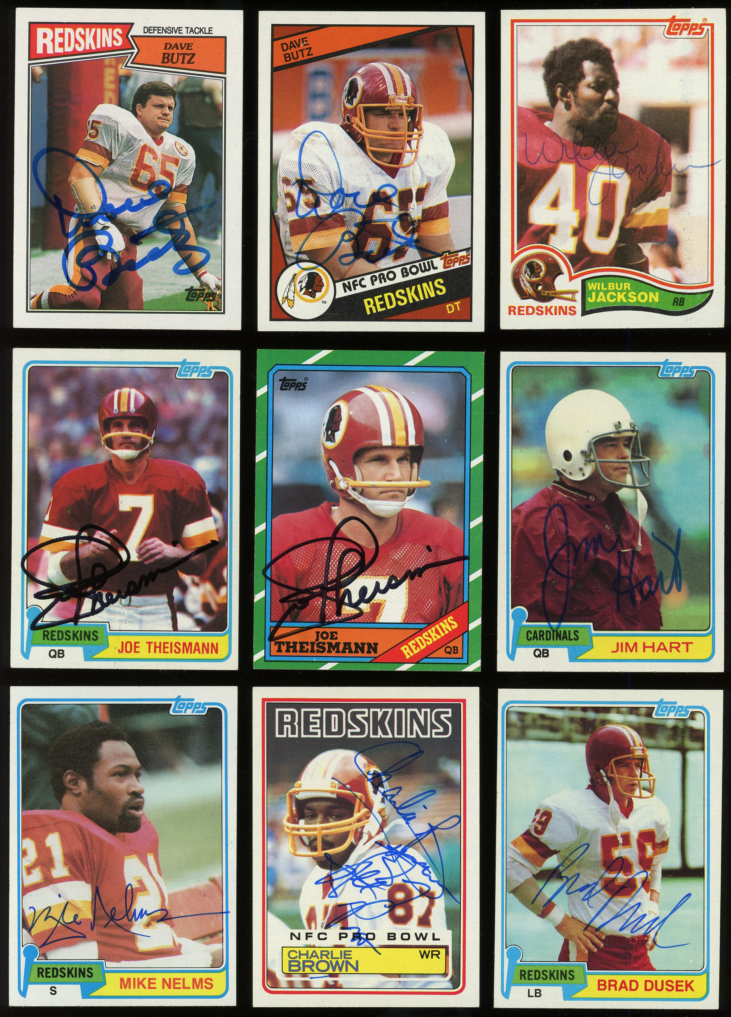 1979-1989 Signed Cards: (147 cards, average NM) with (2) Dudley, (2) Graham (one personalized), J. Hart, Houston, (2) Huff, D. Jones, Jurgensen, (2) Manley, (2) McCormack, B. Mitchell, Moseley, Osborne, Pardee, (2) Schroeder, (2) T. Smith, Starke, (2) Theismann;